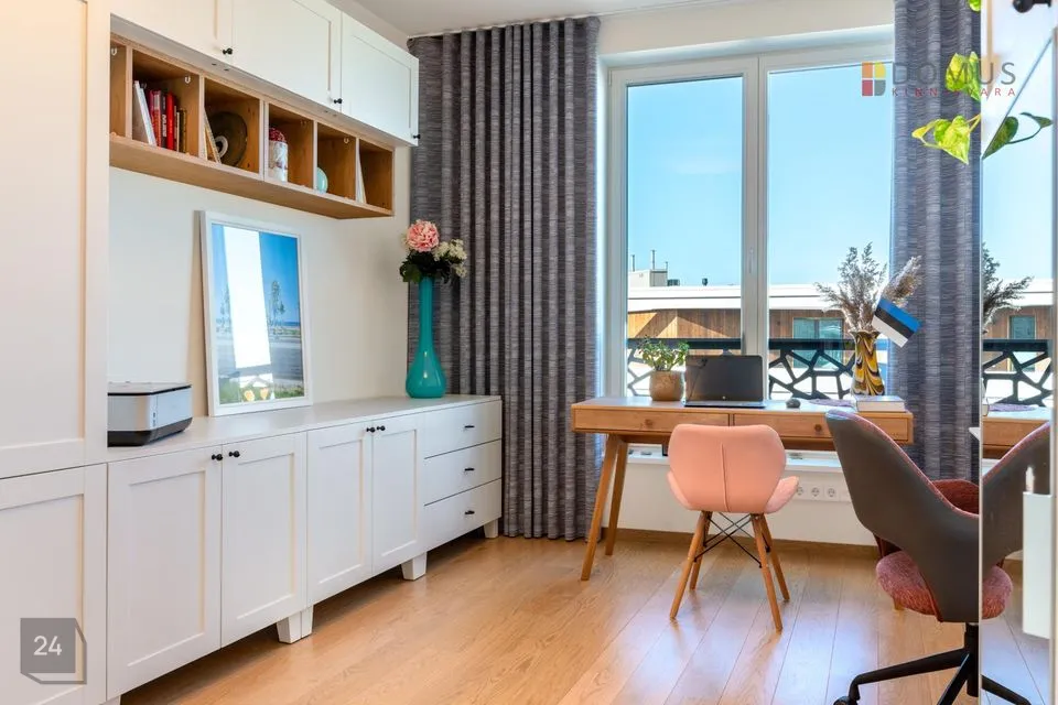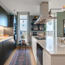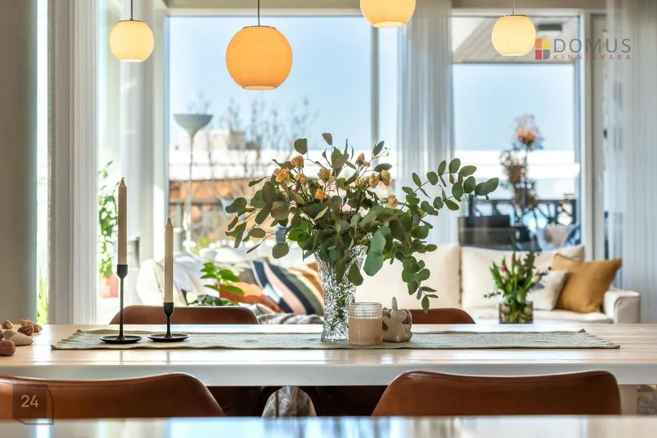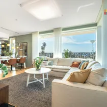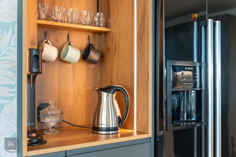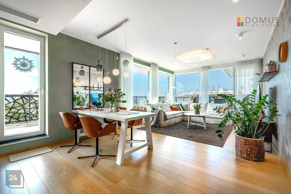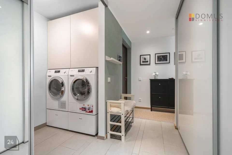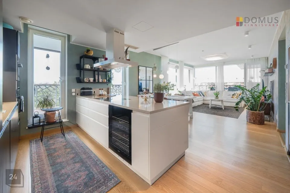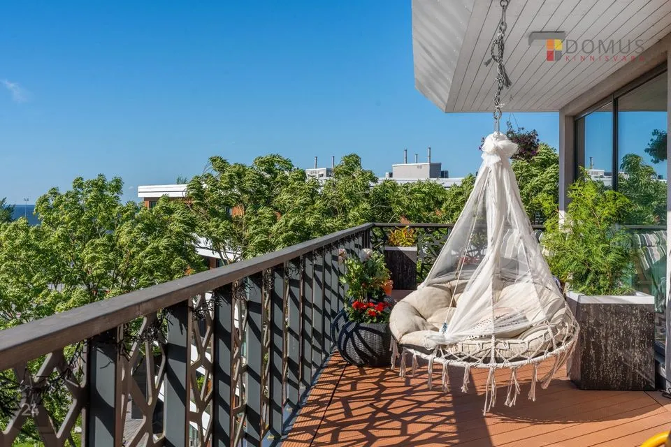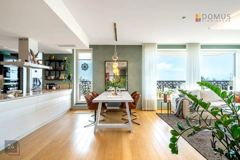 Korter on kenasti hoitud, viimistlusmaterjalid kvaliteetsed ja tehnika tippklassist. Köögimööbel Scavolinilt, kogu köögitehnika on Mielelt, lisaks tava-ahjule ka eraldi auruahi/mikrolaineahi ja soojendussahtel– tõeline kokkaja unistus! Lisaks veinikülmik ja Boschi kahepoolne külmik koos jäämasina ja filtreeritud joogivee süsteemiga. Suuruse poolest väga ruumikas köök-elutuba mahutab suure söögilaua ja diivani, terrassile pääseb sellest ruumist lausa kolmest ukest. Oma pääsud terrassile on veel kahest magamistoast.