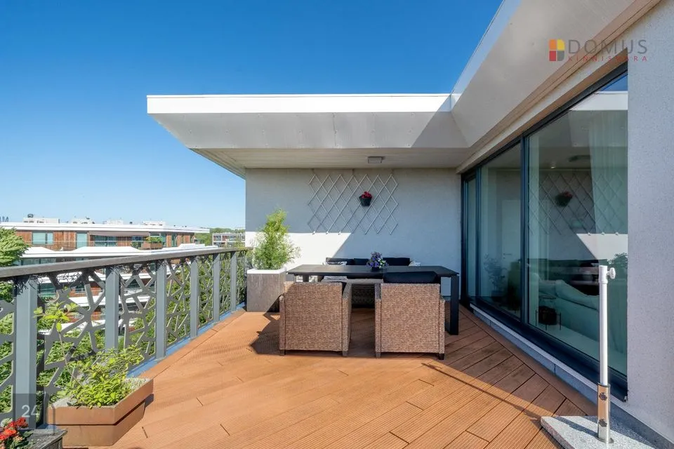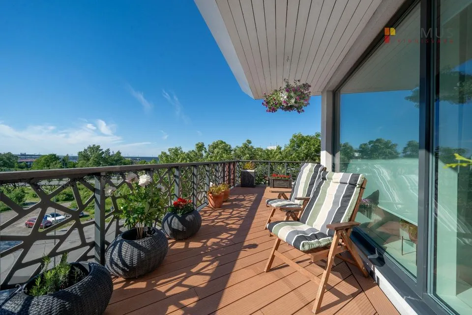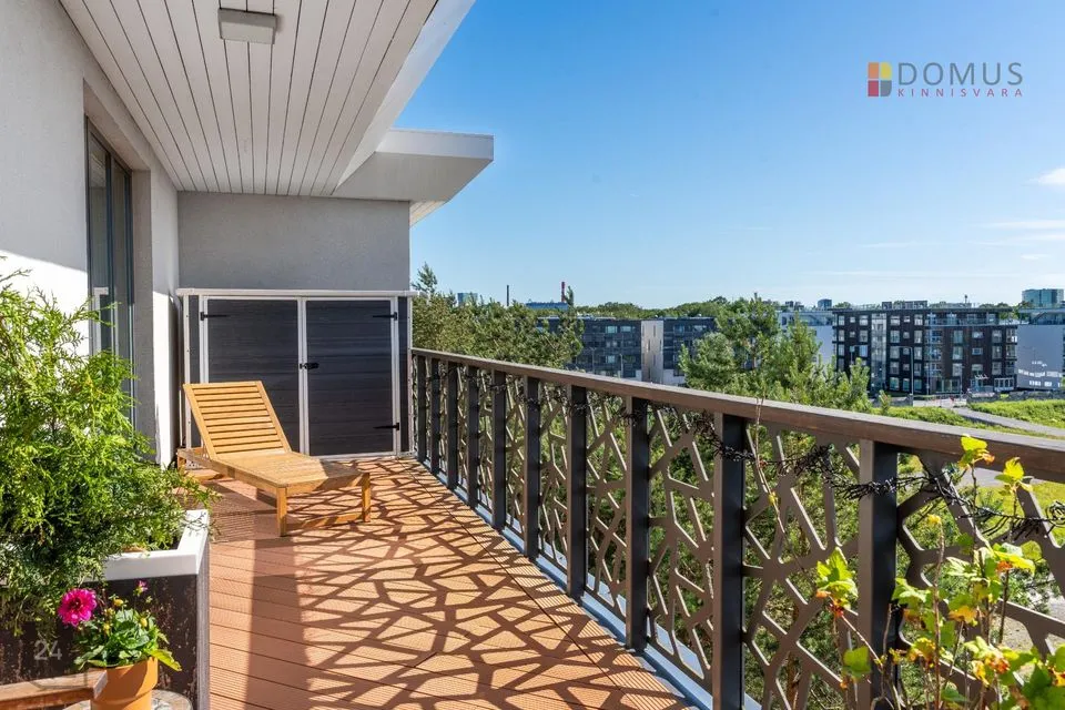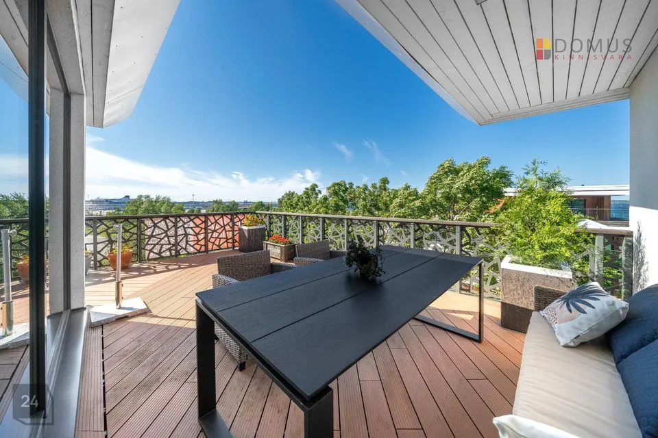 Terrass on nii suur, et seal saab privaatselt päevitada maja lõunapoolsemas küljes või siis suurema seltskonnaga suure laua taga istuda ja grillida vaatega otse merele. Vaade merele, reisilaevadele ja ümbritsevale rohelusele on ka korteri akendest.