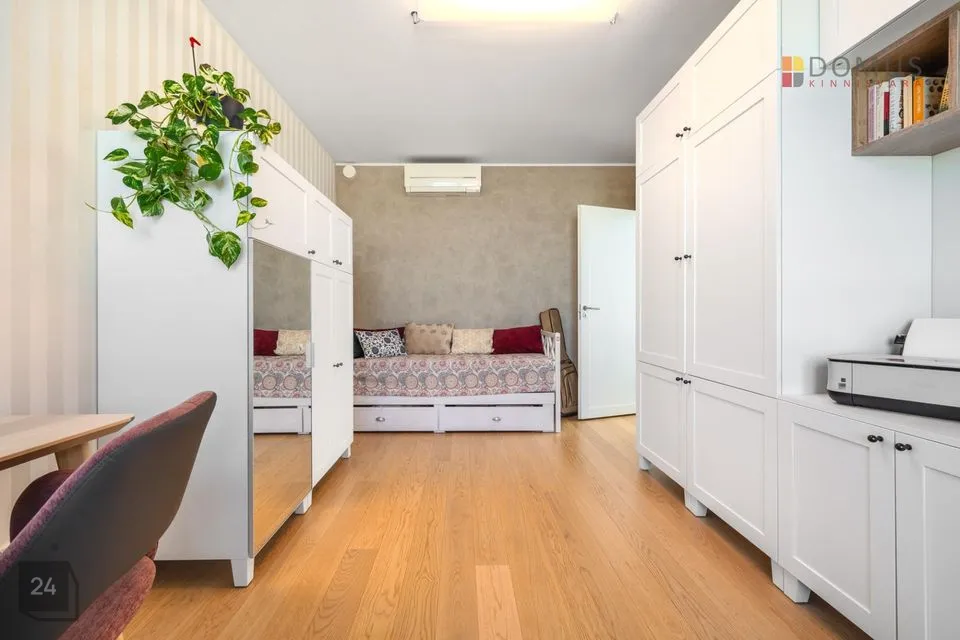 Teine eriliselt äramärkimist vajav garderoob asub samuti esmapilgul peidus, nimelt suures magamistoas eraldi seina taga. Sisse pääseb sellesse ruumi mõlemalt poolt voodit omaette lükanduste kaudu ja see ei ole ainult maast laeni garderoob, vaid annab samuti võimaluse paigutada vajadusel silma alt ära ka suuremaid asju.