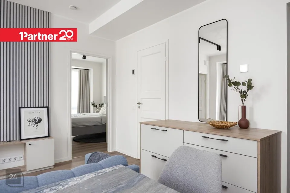 3-toaline korter, kus ruumi kasutus on maksimaalselt professionaalse sisekujundaja poolt planeeritud. Köök ja elutuba on avatud planeeringuga ning kaks magamistuba asuvad eraldiseisvatena. Korteri juurde kuulub kaks rõdu (üks pääsuga elutoast ning teine magamistoast).
