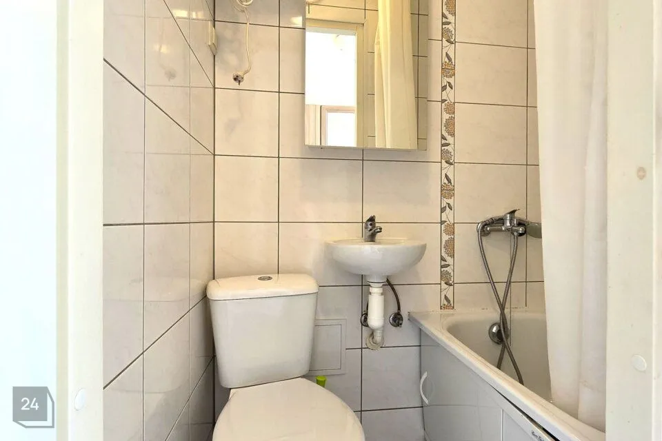 Korteris on esik, ühendatud WC ja vannituba, tuba avatud köögiga.