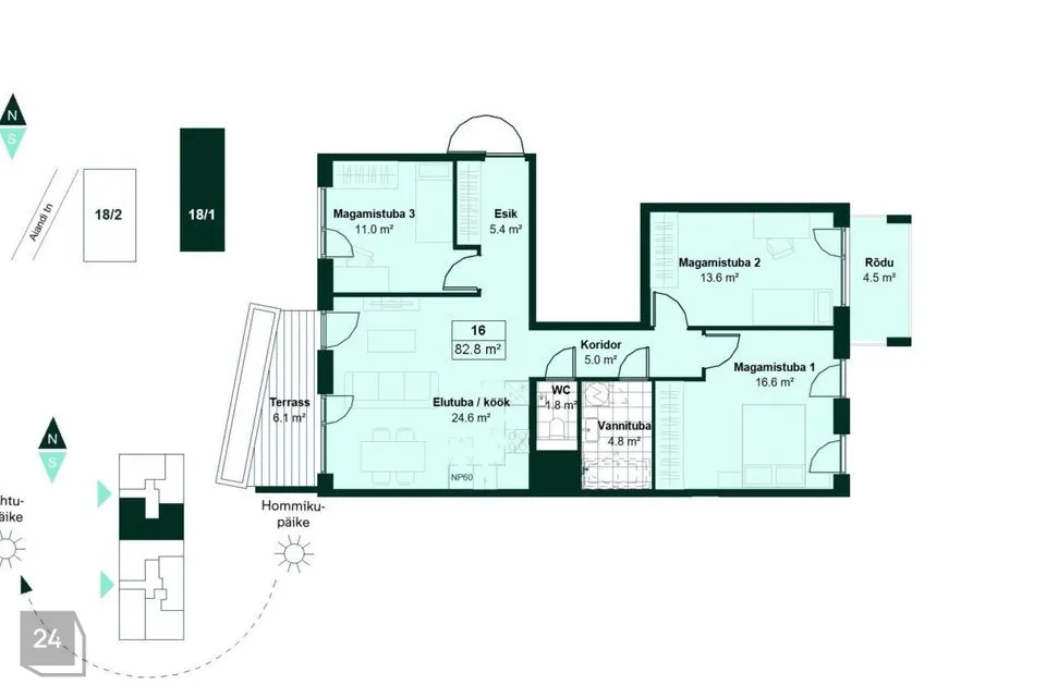 Aiandi 18 neljakordse ja kaheksakordse elamu kodud asuvad kaasaegses naabruskonnas, kus elamu ümber lisavad looduse ilu viljapuud ja lopsakad põõsad. See loob rahuliku keskkonna, kus lapsed saavad oma kodu hoovis naabrilastega sõbruneda ning kõik pereliikmed puhkehetkedel lõõgastuda. Kodud on hoolikalt planeeritud, maast laeni aknad täidavad ruumid loomuliku valgusega, luues avara ja kutsuva atmosfääri. Nutikate planeeringutega kodudes on palju ruumi ning nišid, kuhu saad paigutada sisseehitatud kapid, mis aitavad hoida kodu korras ja kõik vajaliku käepärast. Varakult valides on sul võimalus kasutada sisearhitekti poolt koostatud viimistluspakette, et luua täiuslikult isikupärane kodu. Lisaks pakume Bonavalt tellitavat kvaliteetset köögilahendust, mis on juba sinu uude koju paigaldatud ja kasutamiseks valmis.