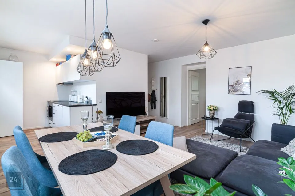Korter on müügis kogu sisustusega, milles on olemas kõik eluks vajalik - köögimööbel koos tehnikaga (pliit, ahi, külmkapp, nõudepesumasin), Samsung pesumasin.. Lisaväärtust lisab mugav ja praktiline walk-in garderoob.