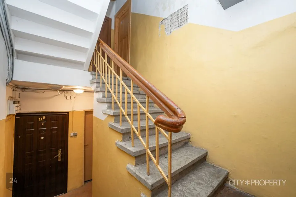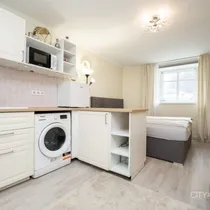 Korter asub maja kõrgel soklikorrusel, on valgusküllane ja päikesepoolne. Planeering on praktiline: avatud köögiga elutuba ja duširuum/WC. Väikese pinna lahendus on arhitekti poolt juba algselt kavandatud mugavaks minikorteriks.