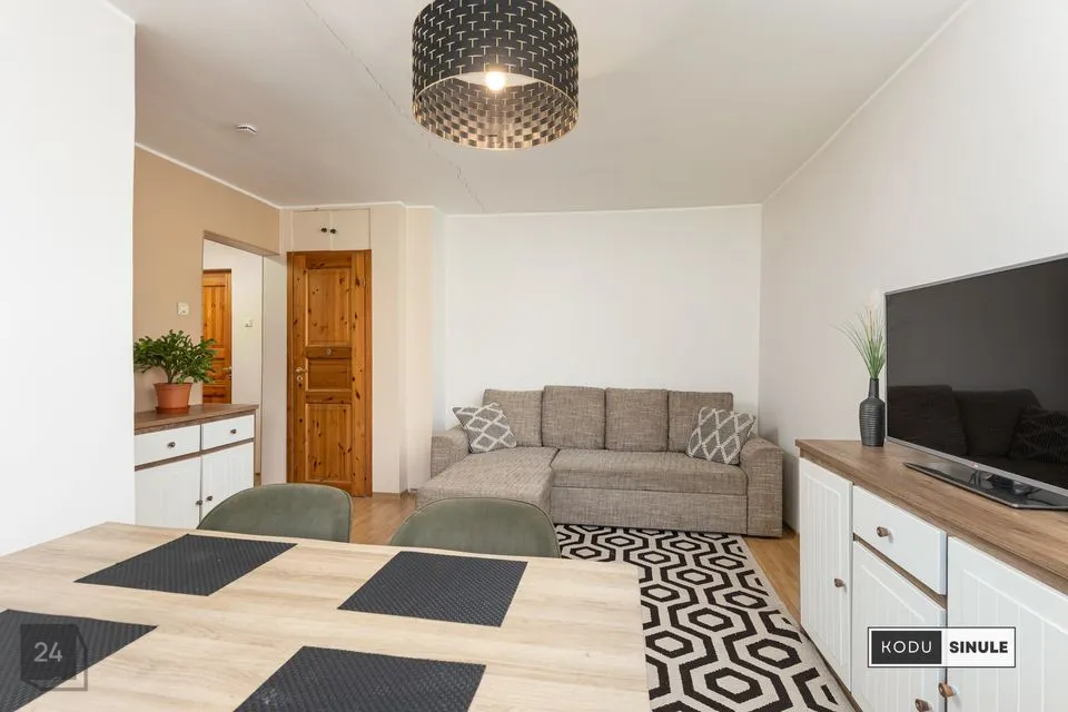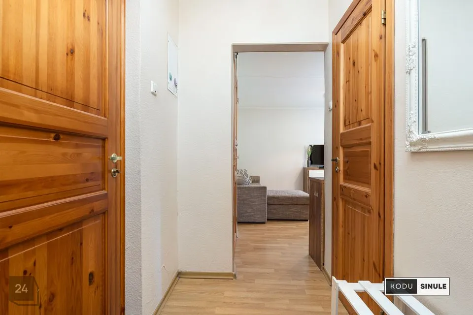 Korterisse sisenedes on esik, otse jääb tualettruum koos vannitoaga. Esikust vasakule jääb elutuba ning elutoast pääseb kööki, paremat kätt jääb magamistuba