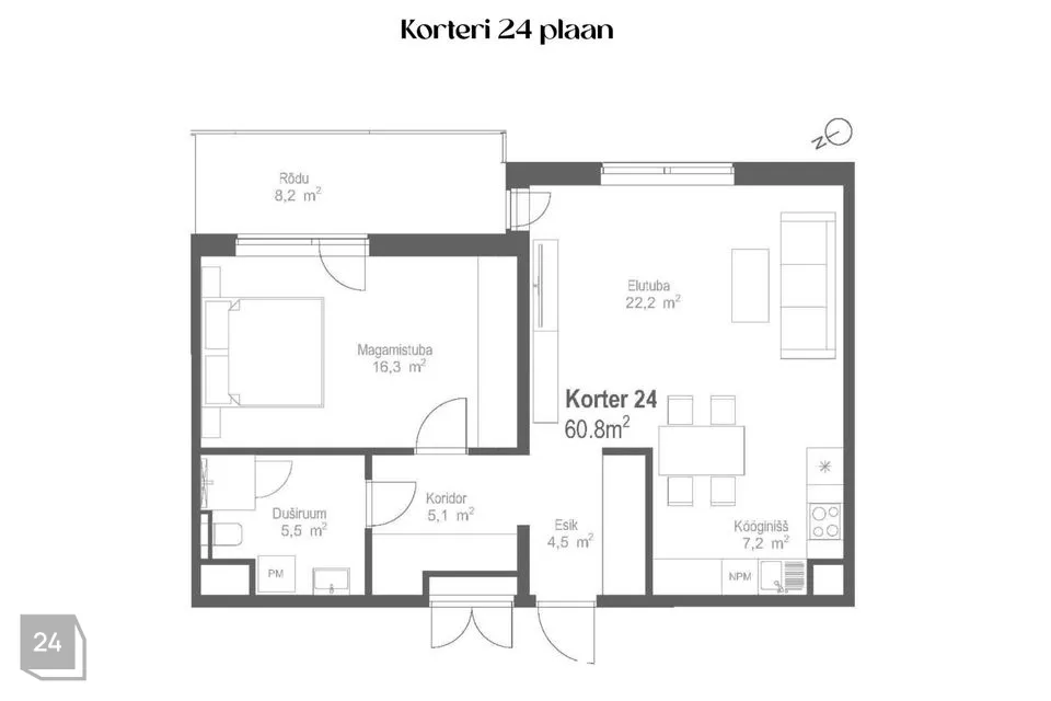 Korteritele lisab väärtust klaasitud rõdu, sisekujunduses on eelistatud Skandinaavia stiilis värvipaletti.