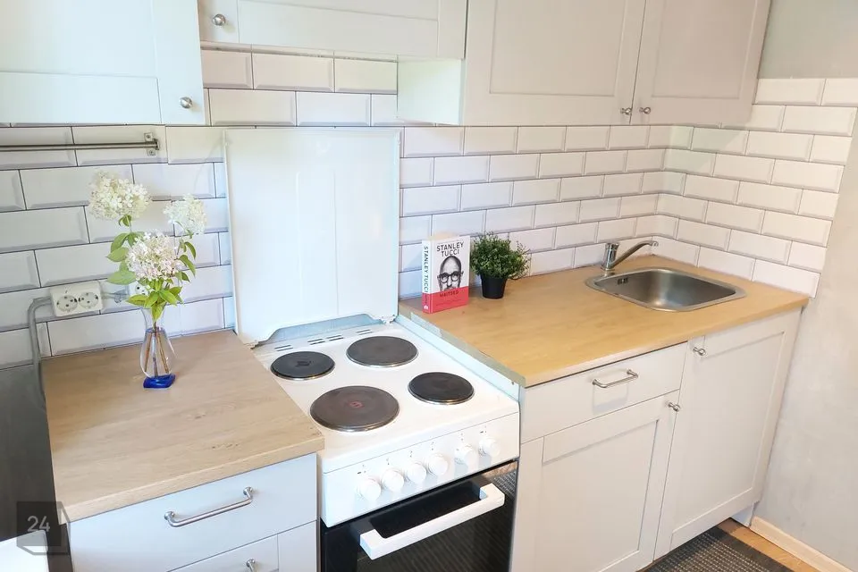 Kööki jääb köögimööbel, pliit, külmkapp, laud ja kaks tooli. Elutoas on diivan, suur kapp, kirjutuslaud, esikus suur riiul ja jalanõude kapp.