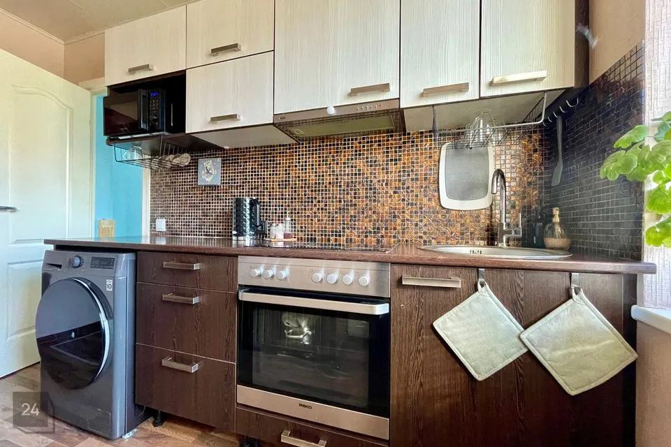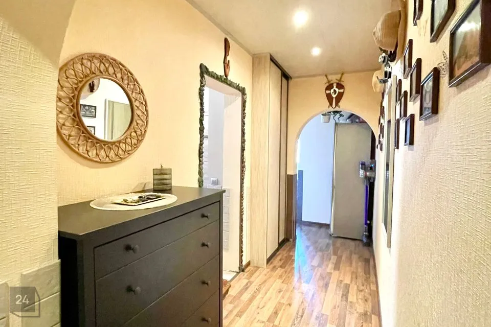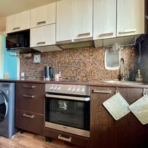 Korteri põrandal laminatparkett. Seinad tapetseeritud. Vannituba ja tualettruum plaaditud.