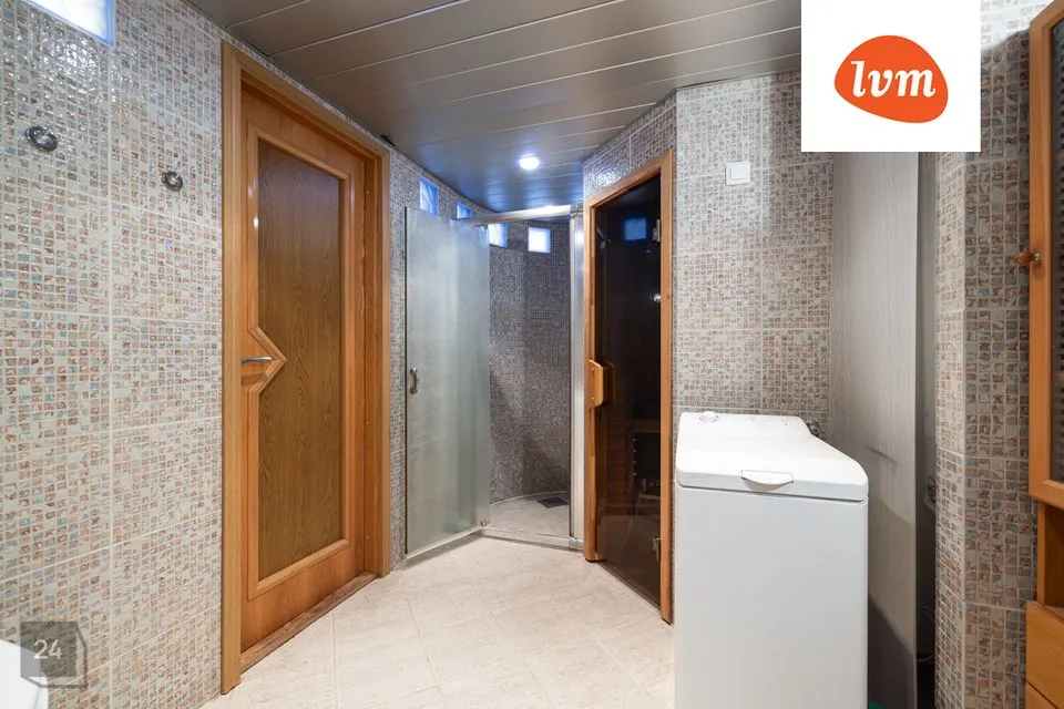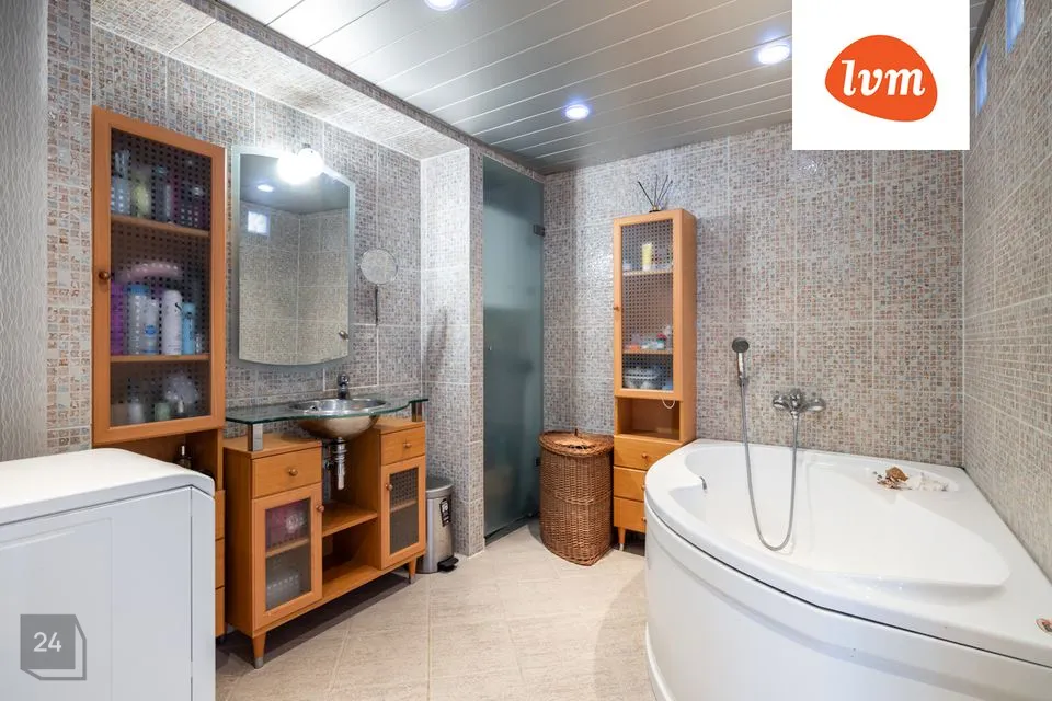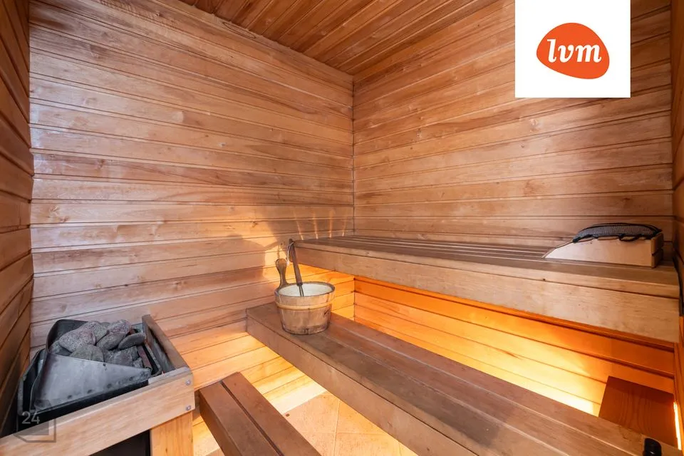 esik, kus on sisseehitatud garderoobikapp; eraldi wc; magamistuba, kust pääs rõdule; teine magamistuba, kus on sisseehitatud garderoobikapp; suur vannituba koos saunaga (elektrikeris); majapidamisruum ning avatud köök-elutuba.