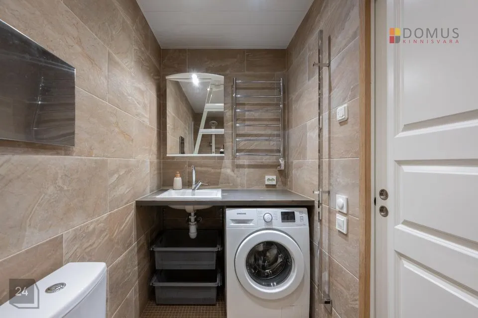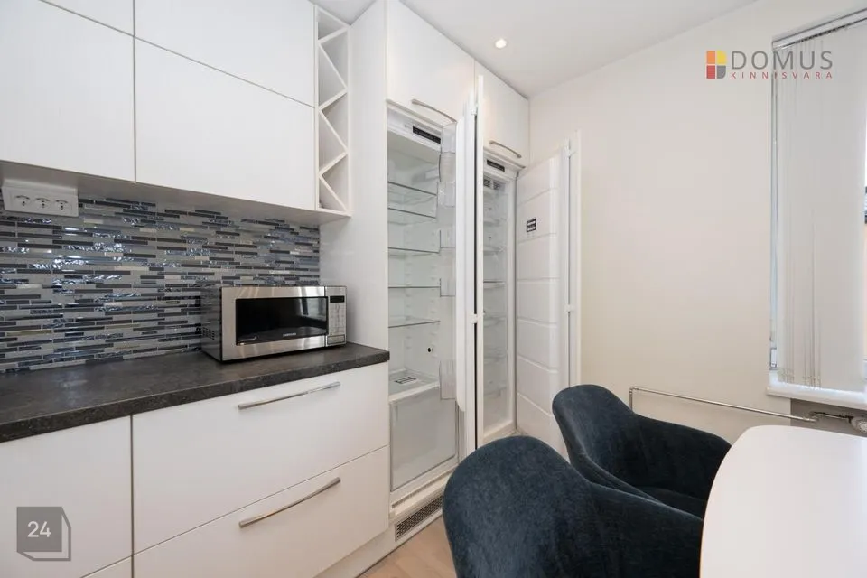 Korteris on olemas kogu vajalik tehnika: köögis kvaliteetne mööbel koos külmiku, nõudepesumasina, ahju ja pliidiga, vannitoas pesumasin ja elektriline põrandaküte. Sooja vee saab elektriboilerist. Piltidel olev mööbel jääb uuele omanikule. Tubades on paigaldatud modernsed ja ruumisäästlikud lükanduksed, mis lisavad nii praktilisust kui ka stiili. Majas on olemas ka valguskaabel, mis tagab kiire interneti – suurepärane lahendus tööks ja meelelahutuseks.