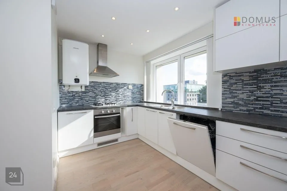 Korteri elutoas ja köögis on avar avatud planeering, mille akendest avaneb vaade linnamelule. Päeval võib jälgida vilgast liiklust ja ärikvartali toimetusi, kuid õhtupimeduses muutub see kõik kütkestavaks linnatulede mereks. Kahe magamistoa aknad jäävad seevastu vaiksesse hoovi, kust paistavad eramajad ja rohelus– ideaalne rahulikuks puhkuseks.