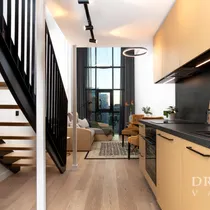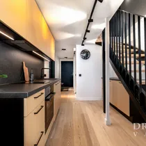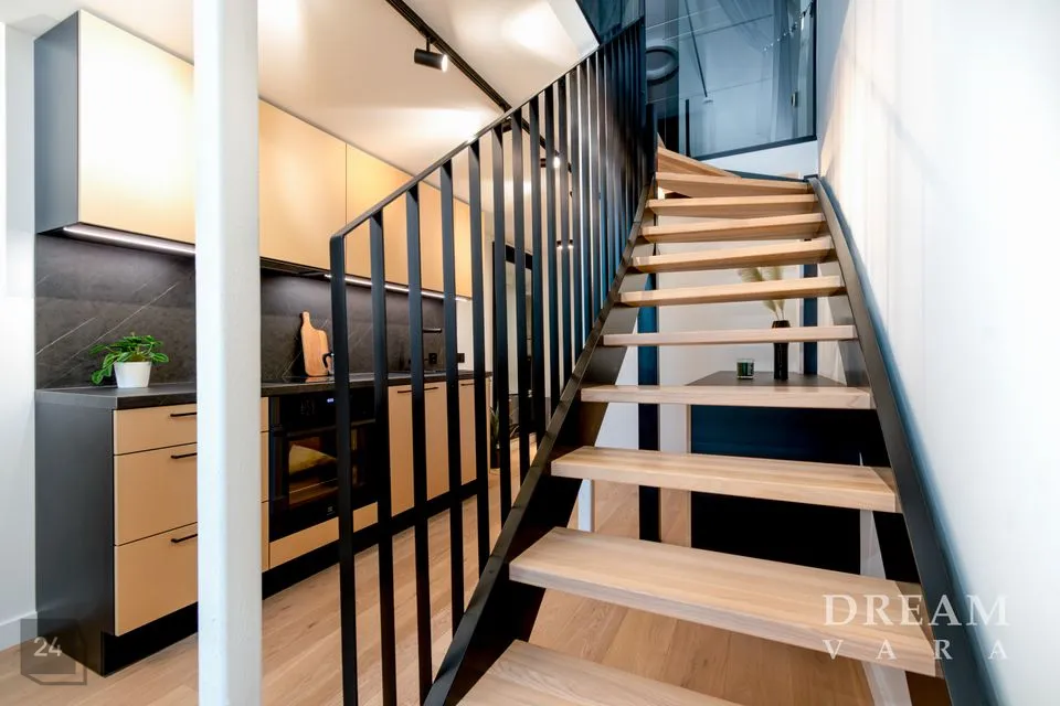 Korteri esimesel tasandil on esik, vannituba ja köök-elutuba. Teiselt tasandilt leiab ruumika magamistoa.