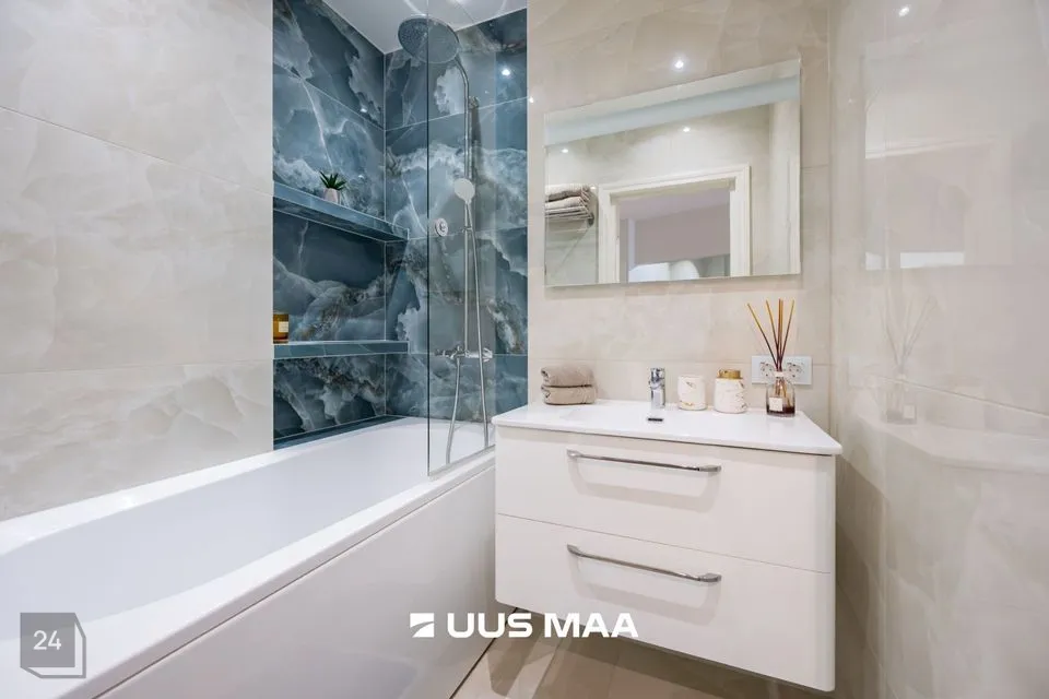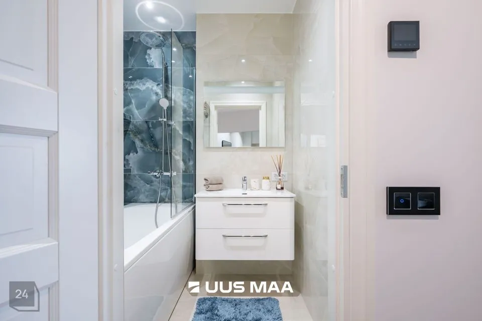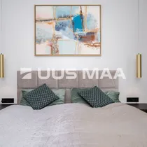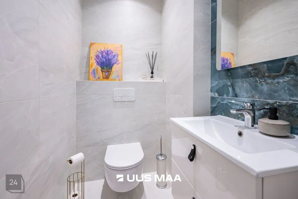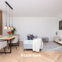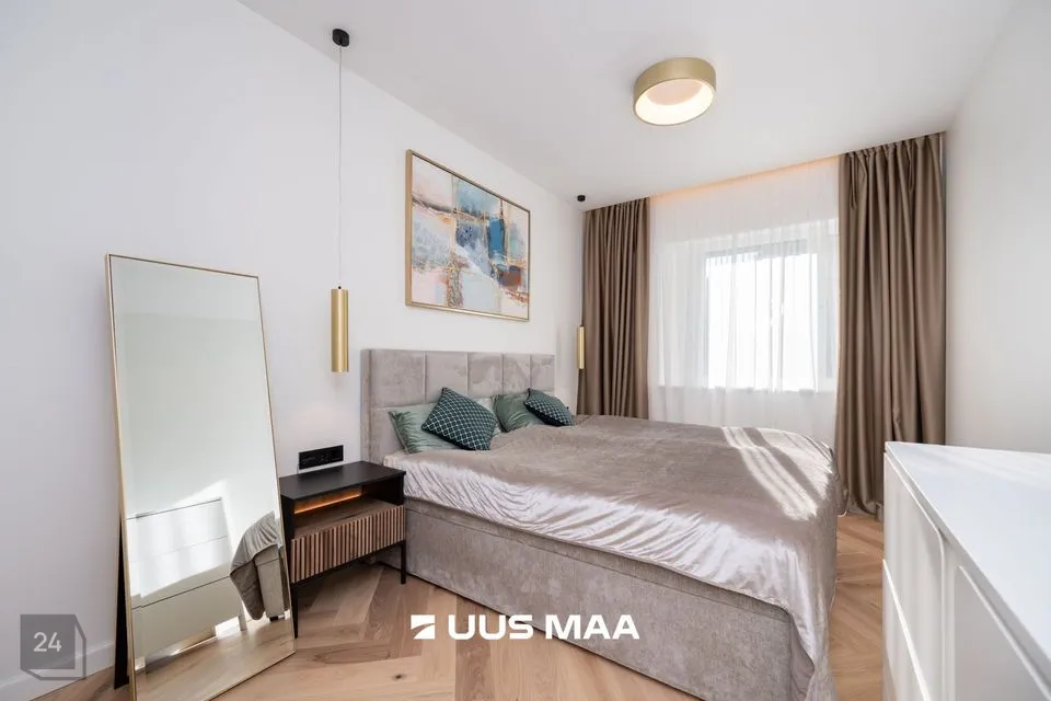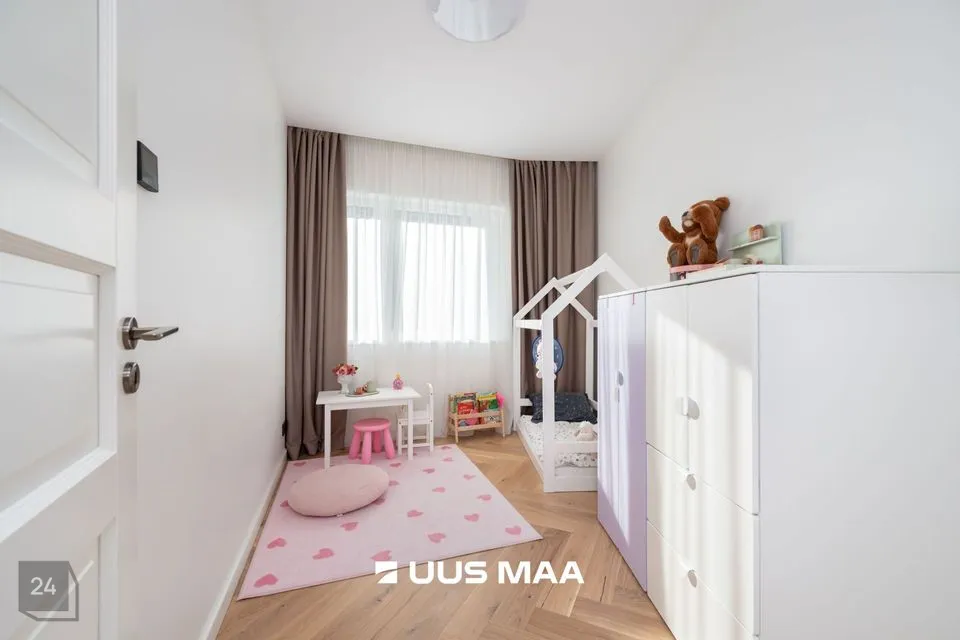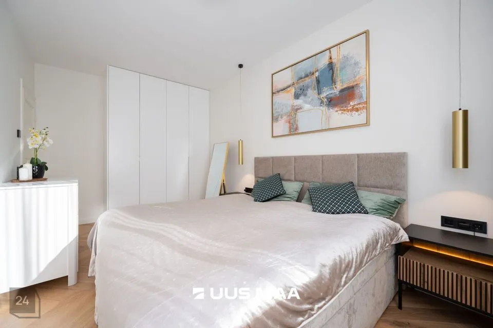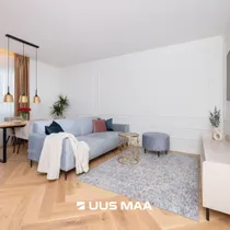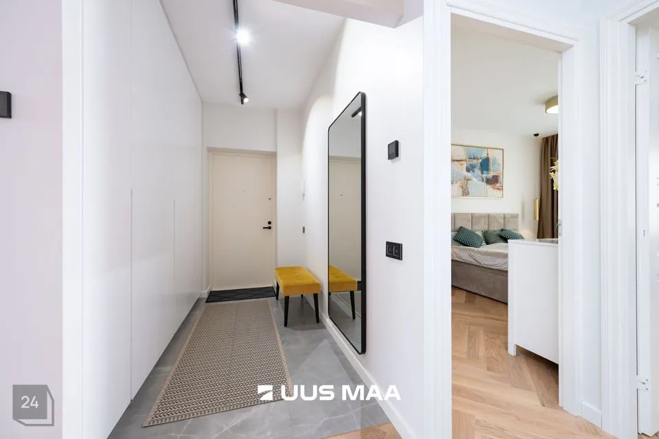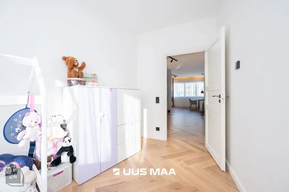 See on kodu, kus vaikus haarab sind kohe, justkui oleksid sattunud linna serva, mitte südalinna. Planeering on loogiline ja läbimõeldud. Korteri keskmes asub ruumikas esik, mis ühendab mugavalt kõiki tube. Vasakule jäävad kolm eraldi paiknevat magamistuba, millest üks sobib suurepäraselt kodukontoriks või elegantseks külalistetoaks. Paremal asub avar ja valgusküllane elutuba, mis on ühendatud avatud köögiga. Vannituba ja WC on eraldi ning viimistletud luksusliku marmorstiilis plaadiga ja varustatud kvaliteetse sanitaartehnikaga. Tõelise mugavuse tagab eraldi majapidamisruum, kus on LG pesumasin ja kuivati, boiler ning rohkelt hoiuruumi.