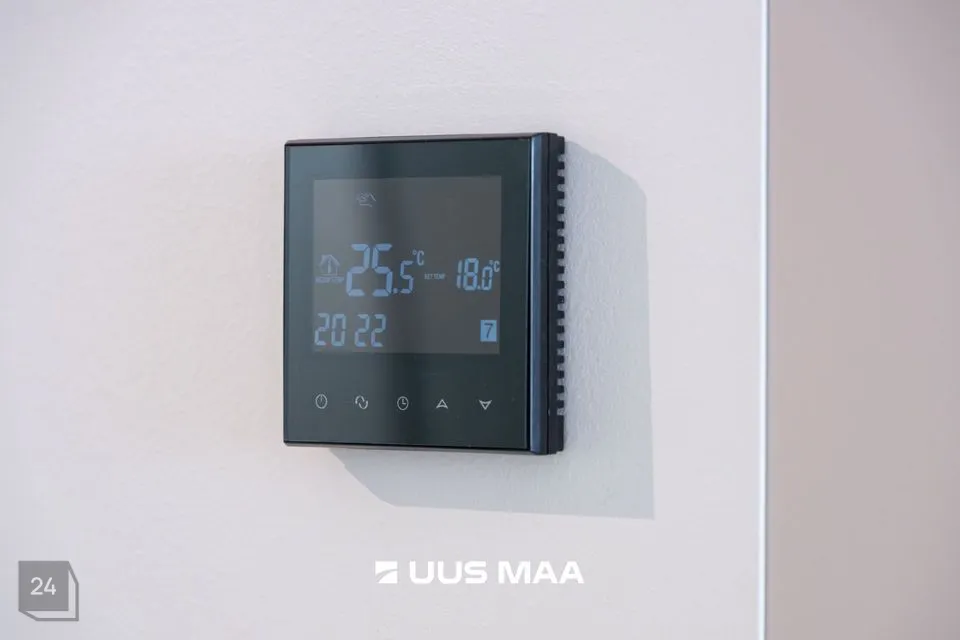 - Korteris on 8 termostaati, igaüks juhib eraldi põrandasoojenduse tsooni – annab täpse kontrolli küttekulude üle ning valatud on uued kipsisegu põrandad, mis on parema soojusjuhtivusega.