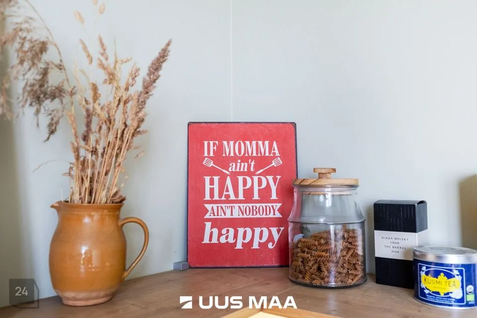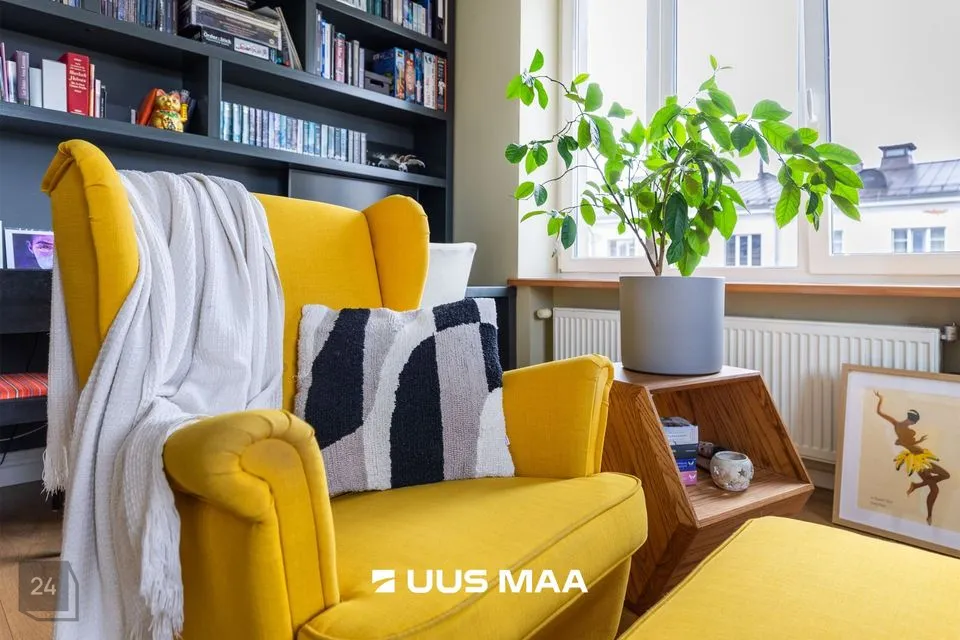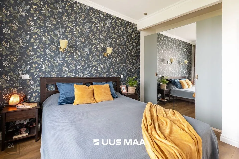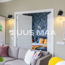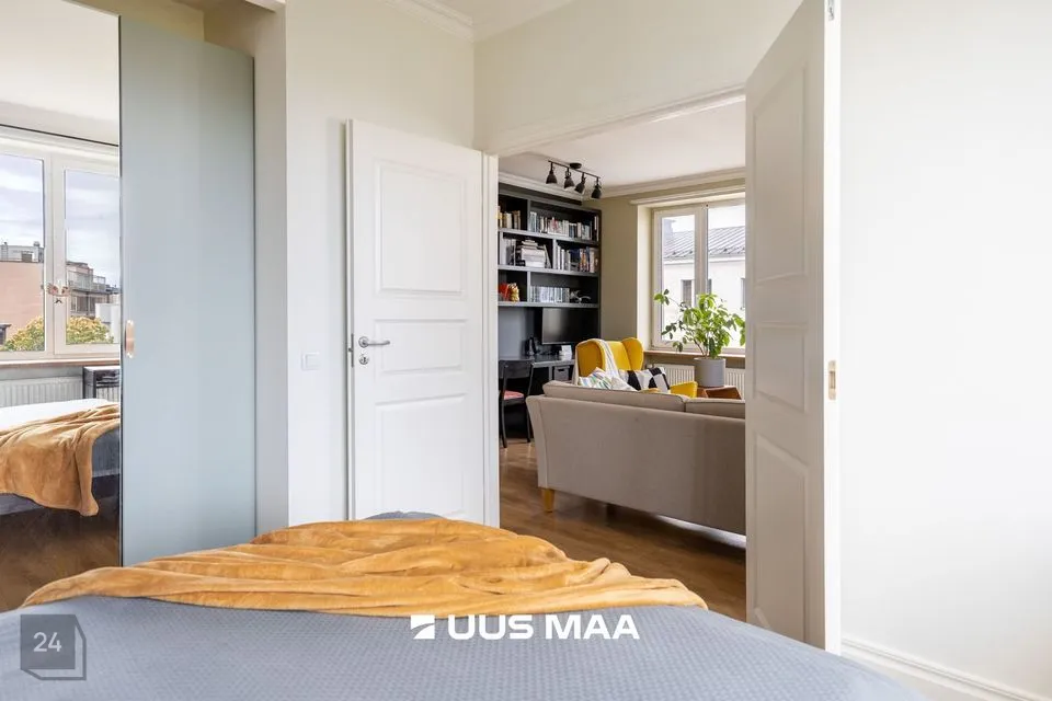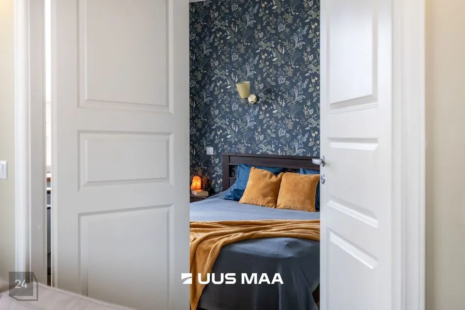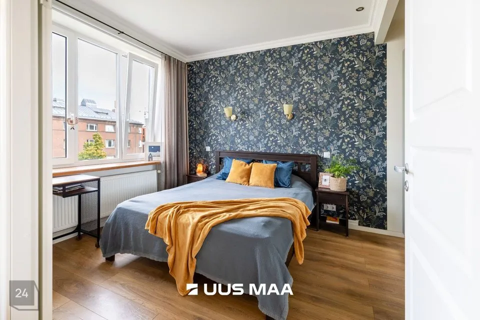 Elutuba on avar ja aknad avanevad kahte ilmakaarde, mis toob ruumi õhulisust ja valgust kogu päeva vältel. Korteri üheks tõeliseks pärliks on kahe uksega eraldatud magamistuba, mis annab kodule omanäolise ja romantilise ilme.