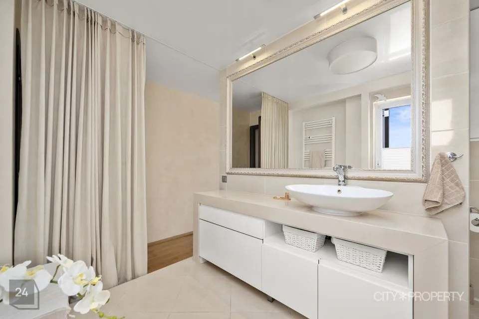 Teisel korrusel asub avar master-bedroom, mille panoraamaknad pakuvad rohkelt loomulikku valgust ja ühendust ümbritseva rohelusega. Lisaks on korrusel luksuslik vannituba mullivanniga, garderoob ja eraldi rõdu, kus nautida hommikukohvi või päikeseloojanguid.