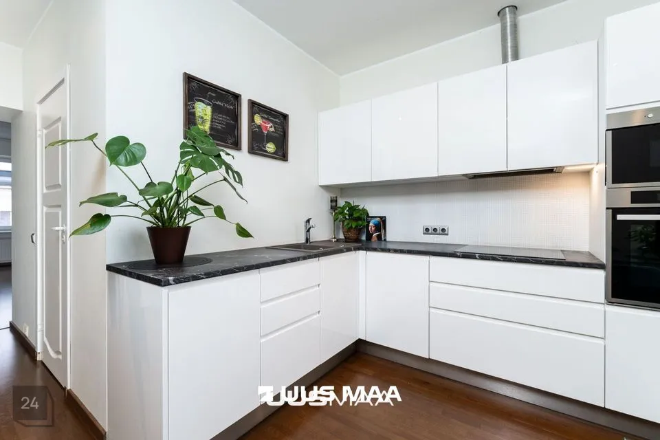Köök on täielikult renoveeritud viis aastat tagasi. Köök on varustatud nõudepesumasina, mikrolaineahju ning induktsioonpliidiga. Viimane on mugavamaks kokkamiseks toodud põrandast kõrgemale. Ruumikad köögikapid võimaldavad lisada oma maitsele ja vajadustele vastava suurema köögitehnika.