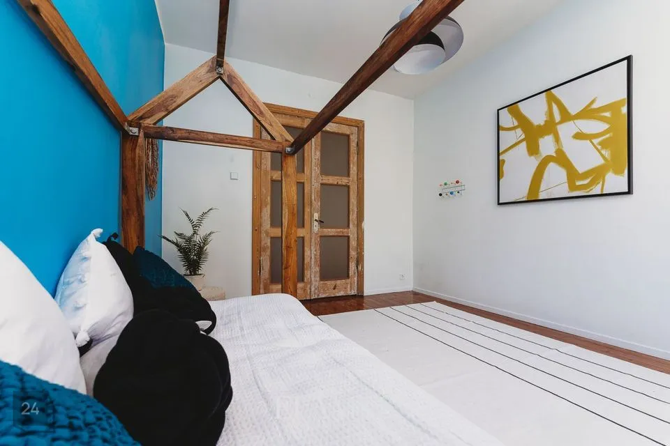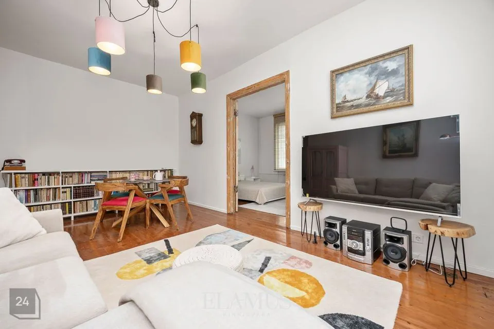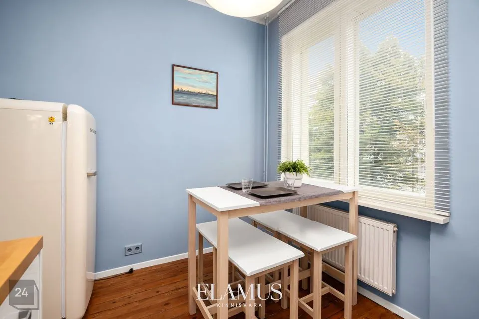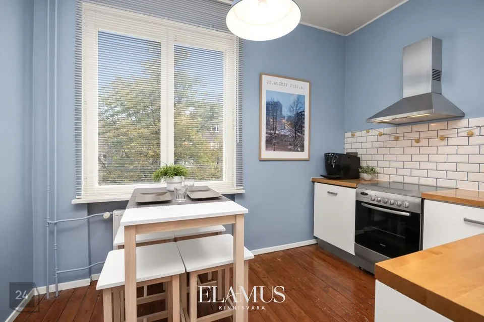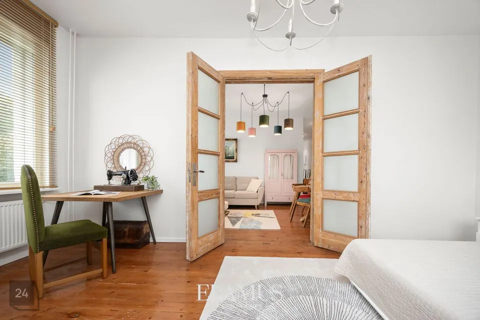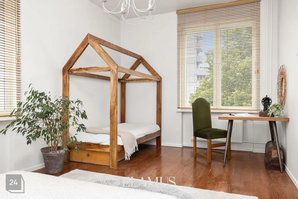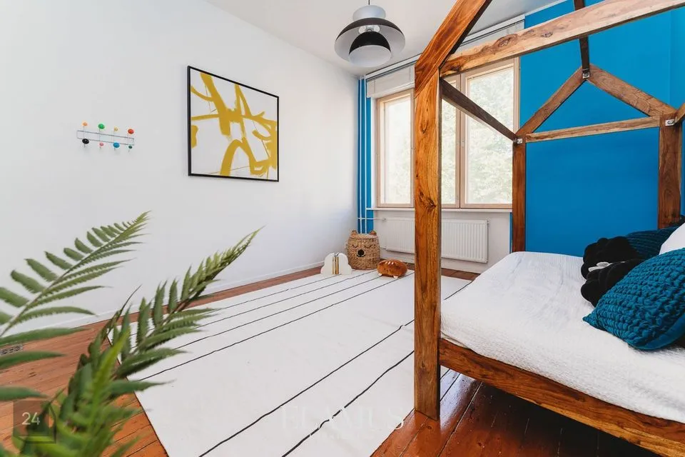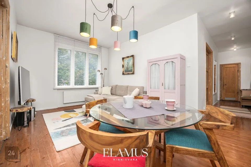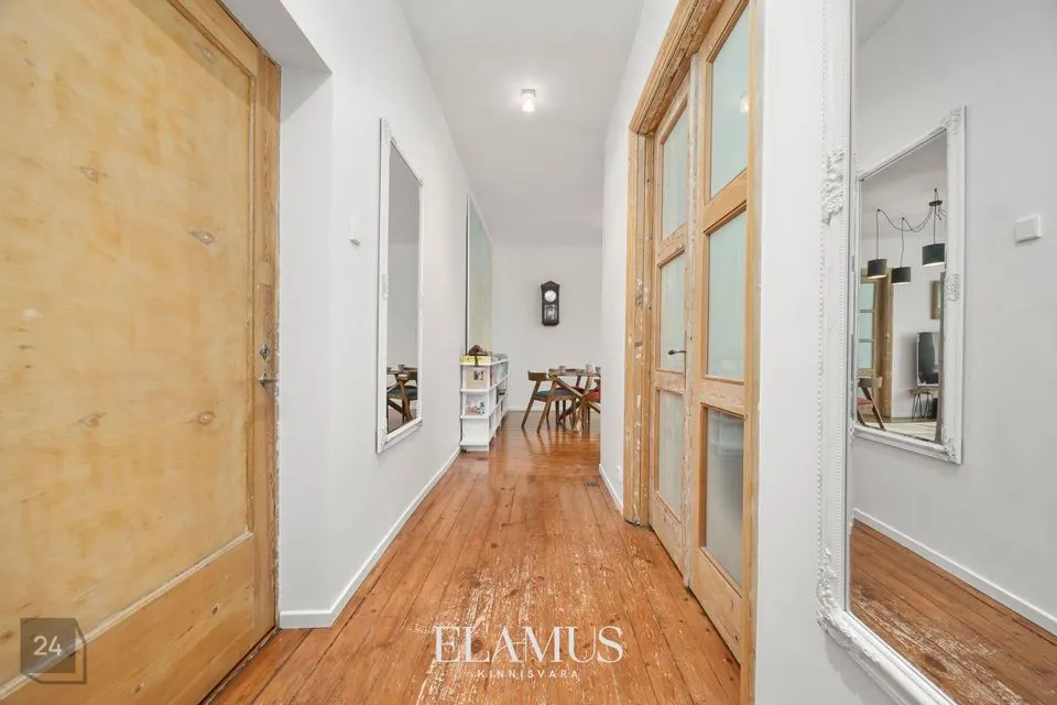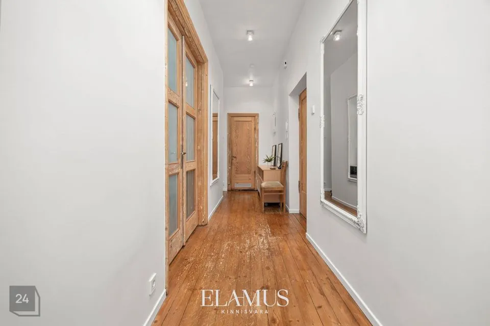 Korteri planeering on läbimõeldud: avar elutuba, valgusküllane magamistuba, hubane lastetuba ning eraldi köök, mis on piisavalt suur, et nautida hommikukohvi, kuid samas elegantne õhtusöökide korraldamiseks. Kõrguselt ligi 3-meetrised laed, klassikalised kahepoolsed uksed ja suured aknad toovad ruumidesse kordumatu ajastu hõngu ning loomuliku valguse igasse päeva. Originaalsed laudpõrandad lisavad soojust ja karakterit.