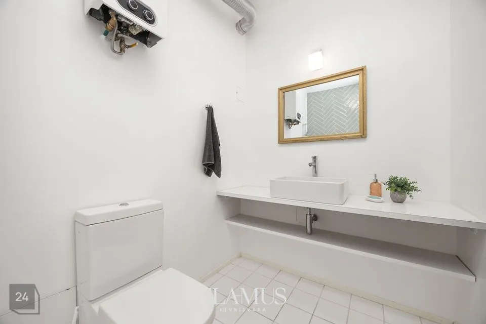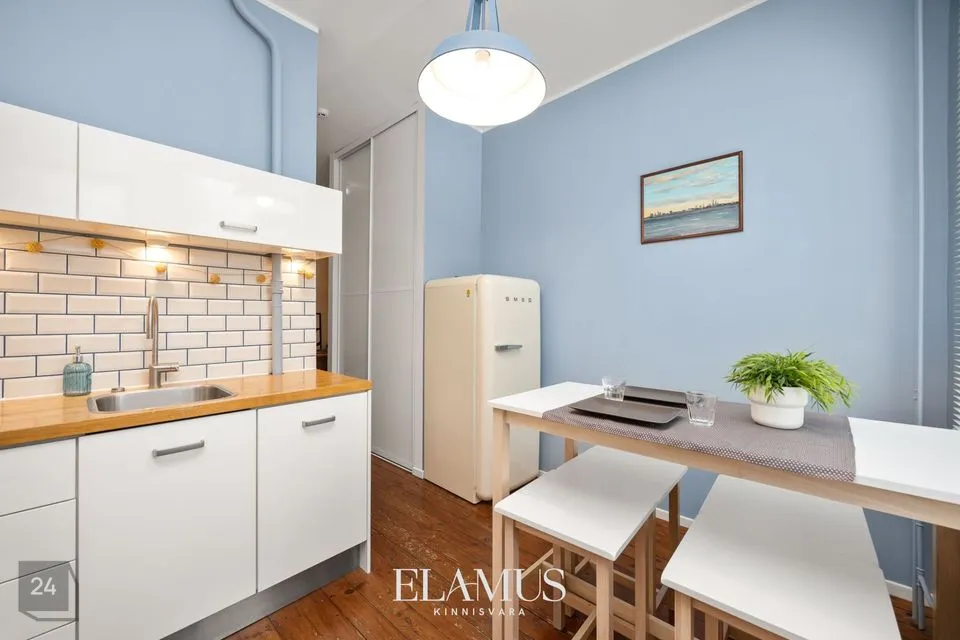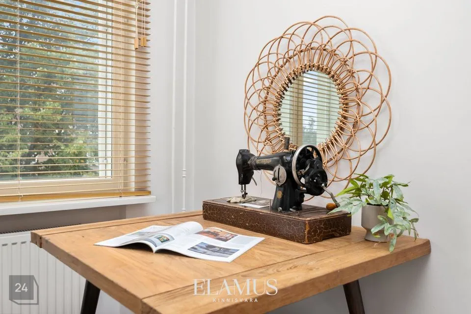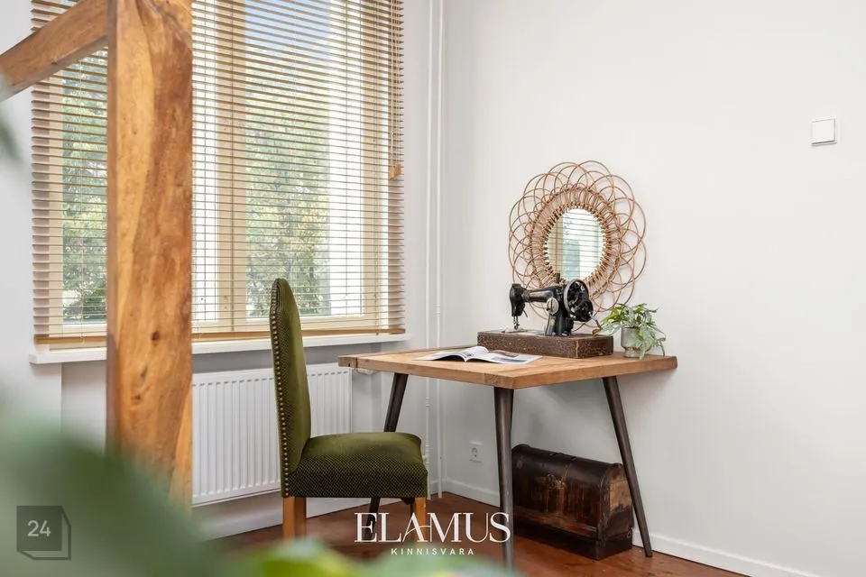 Köök on sisustatud kvaliteetse tehnikaga: Bosch gaasipliit ja ahi, pesumasin-kuivati, disainkubu ning pilkupüüdev retrohõnguline SMEG külmik. Esikus ootab teid nutikalt lahendatud laeni garderoobikapp. Kaasa tulevad ka sisustus, kunstikogu ja raamaturiiulid – justkui sissekolimiseks valmis kodu, kus detailid on juba õigel kohal.