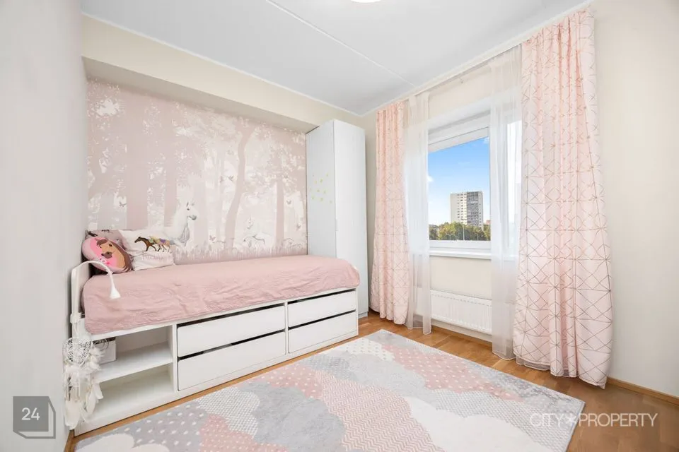 Planeeringu poolest on tegemist ideaalse perekorteriga, toad on avarad ja valgusküllased ning magamistoad piisava suurusega. Kogu korteris on avarad aknad, mis annavad palju valgust ja lisavad avarust.