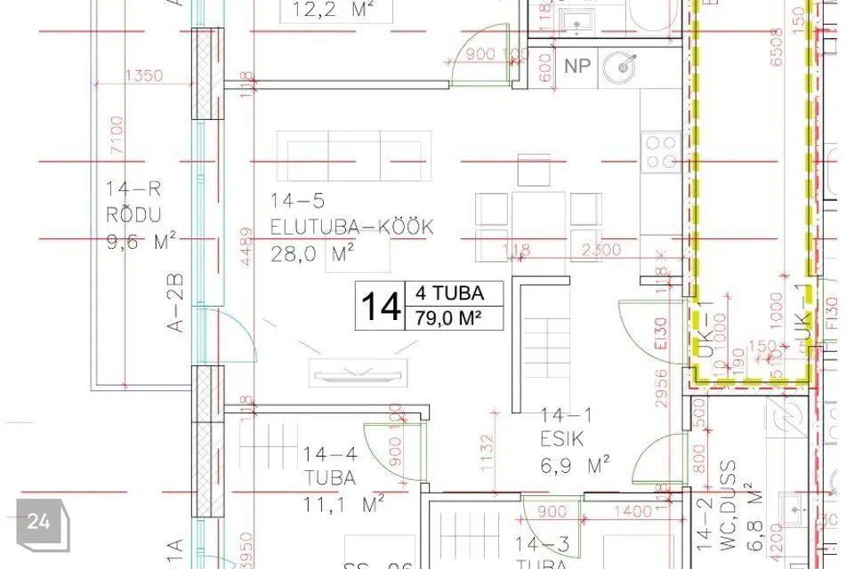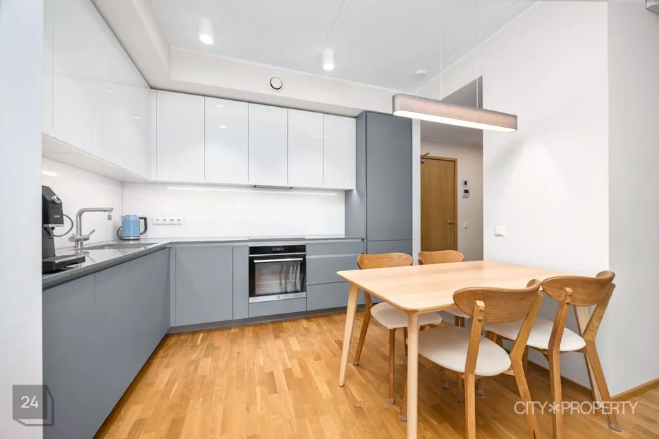 Kööki sisustab eritellimusel tellitud köögimööbel koos vajaliku integreeritud tehnikaga (induktsioonpliit, elektriahi, nõudepesumasin, kubu ja külmkapp). Koridoris on mahukas sisseehitatud garderoobikapp, mis mahutab palju vajalikku.