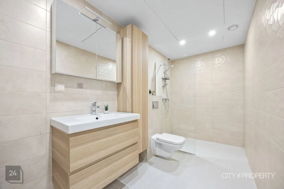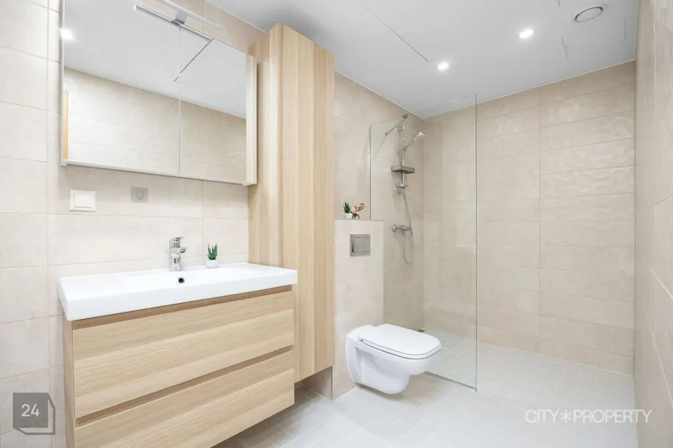 Kortermaja on valminud 2019. aastal. Korteri seinad on värvitud neutraalsetes heledates toonides. Tubade põrandaid katab naturaalne tammeparkett, vannitoad on plaaditud ning olemas põrandaküte. Korterile on paigaldatud kolmekordsed pakettaknad ja olemas soojustagastusega sundventilatsiooni süsteem. Igast ruumist saab eraldi reguleerida radiaatoreid vastavalt oma soovile ja vajadusele.