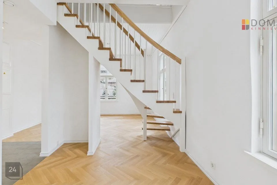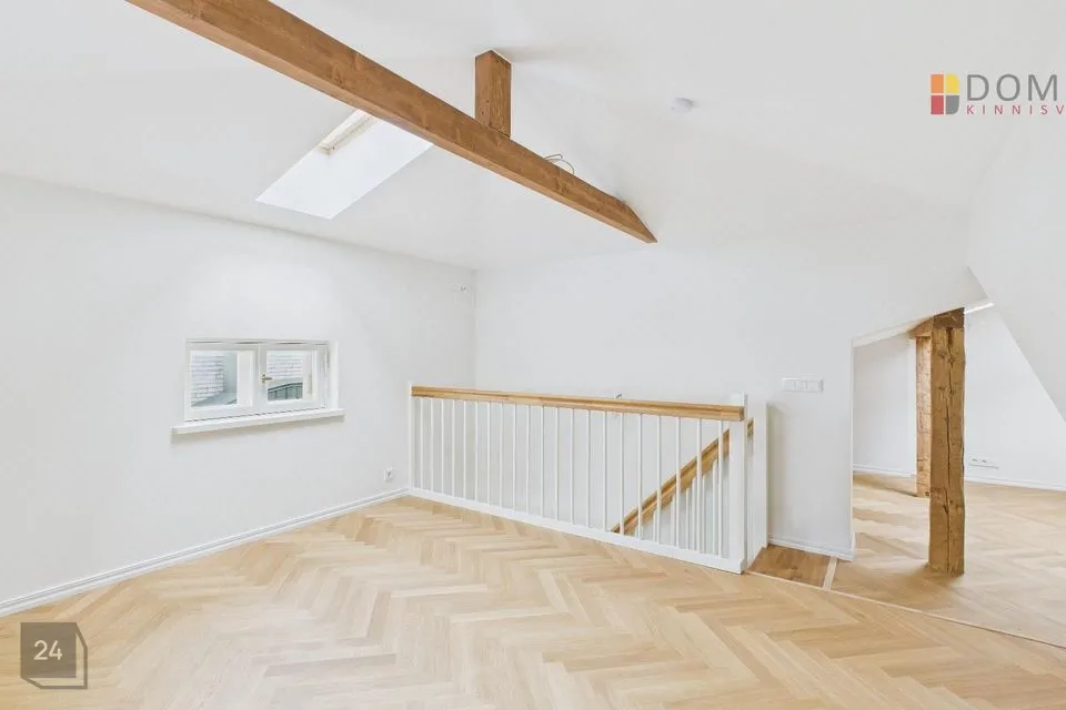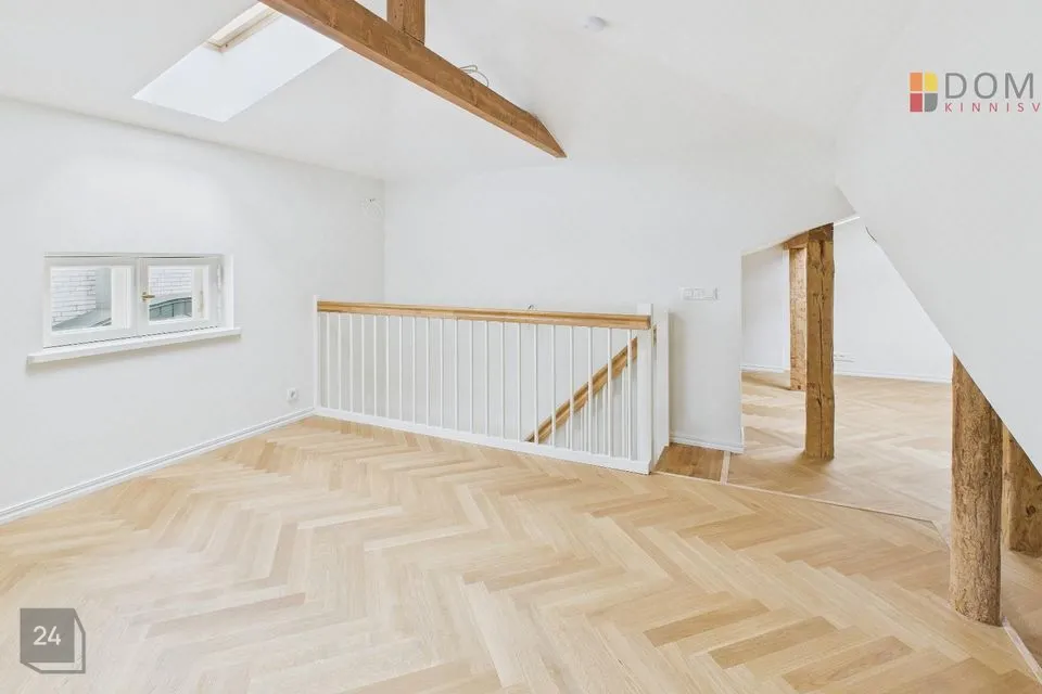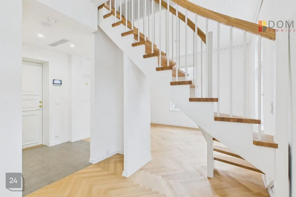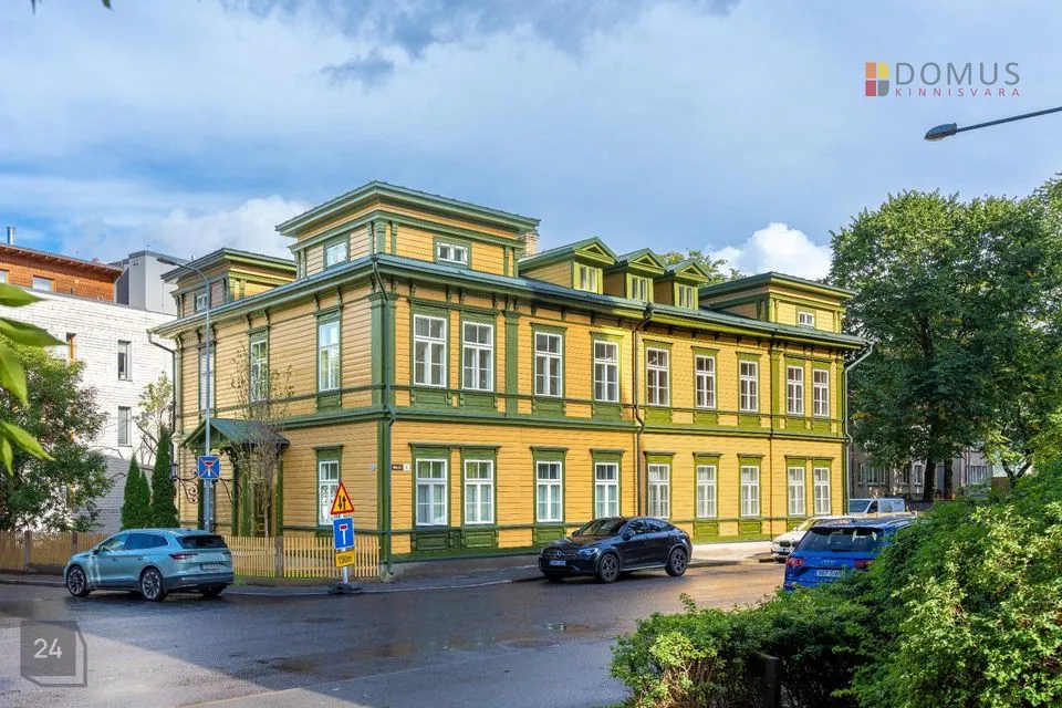 Läbi kahe korruse korter oma torniga! Sissepääsuga maja 2. korruselt avaneb esmalt ruumikas esik, väike wc, eraldi köök ja avar elutuba. Lae kõrgus on ca 2,8 m. Aknad on puitvilladele omaselt suured ja lagesid katab originaali eeskujul puitlaudis.