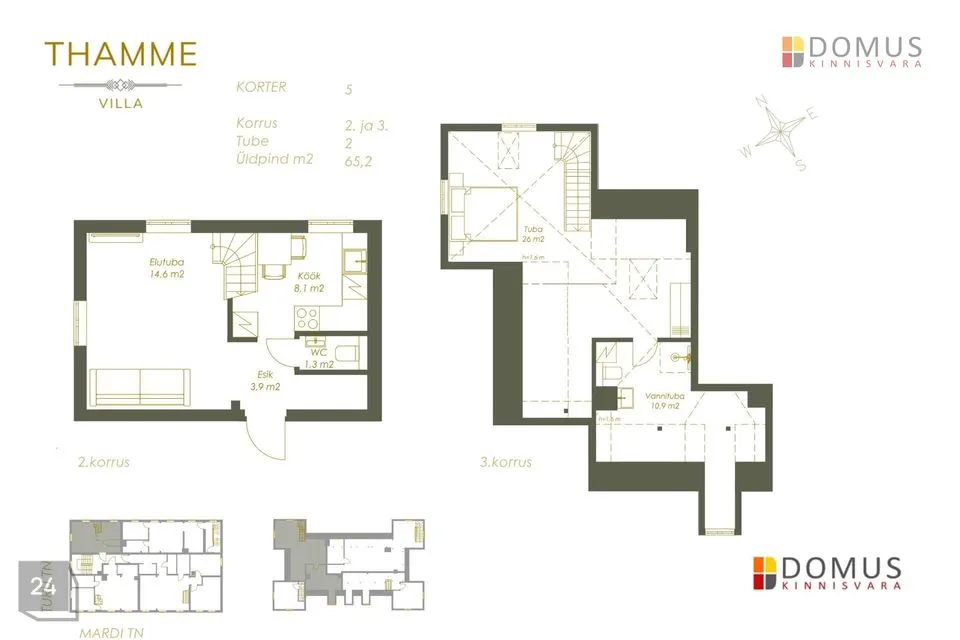 Kinnistul on suur hoov privaatse rohealaga, 10 parkimiskohta kinnistul ja eraldi kõrvalhoone panipaikadega. Korterile on võimalik lisaks osta parkimiskoht hoovis ja panipaik, vaata lisainfot ja tee oma valik kodulehel: https://thammevilla.domus.ee/