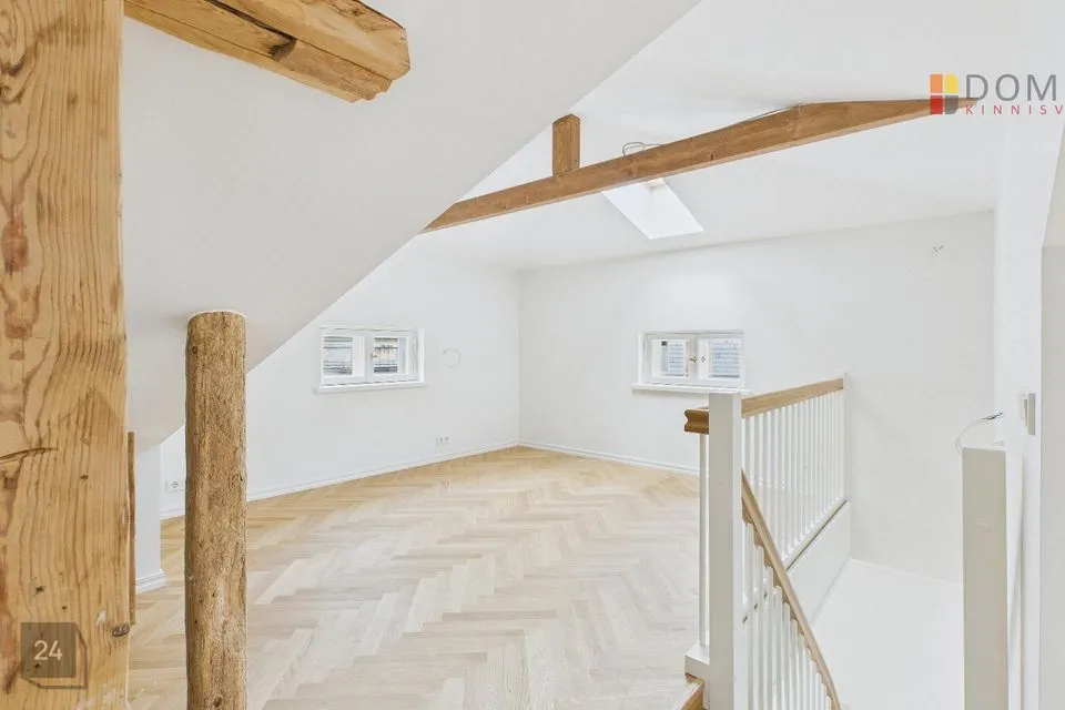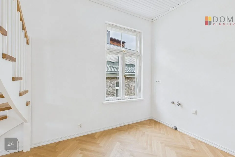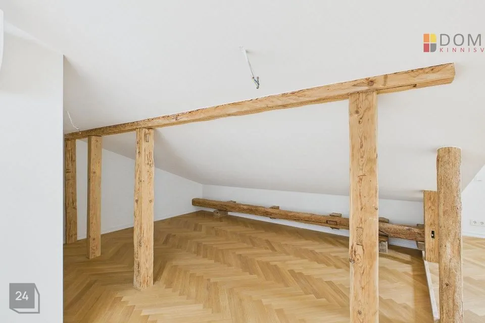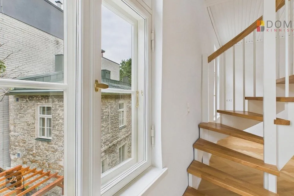 Korteri aknad vaatavad maja rohelise sisehoovi poole ja korterisse paistab õhtupäike. 3. korrusele viiv puittrepp jõuab kõigepealt ühte maja neljast tornist, kuhu on hea paigutada voodi ja mida saab tõeliselt omanäoliseks kujundada, kuna siseviimistlust jäävad ilmestama massiivsed talad.