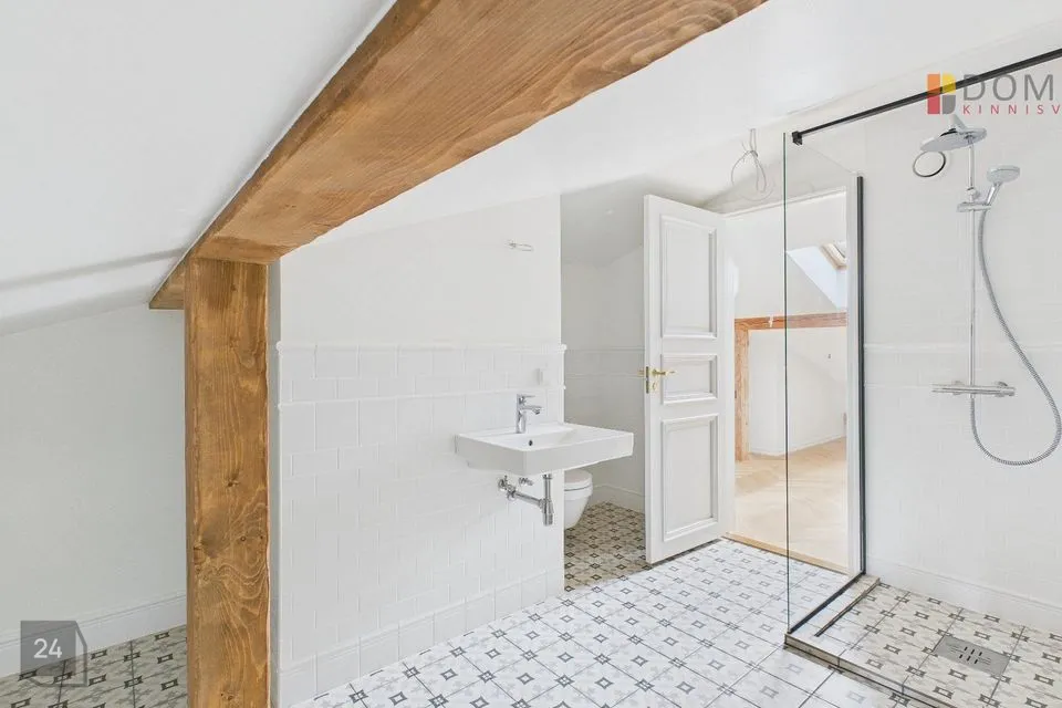 Toa kaldkatuse osadesse lisatakse katuseaknad ja seda ruumiosa on hea kasutada kas töönurga või garderoobina. Korteri ruumikas aknaga vannituba on samuti erilise kujuga, mahutab kõik vajaliku ja jätab rohkelt võimalusi nutikate panipaikade jaoks.