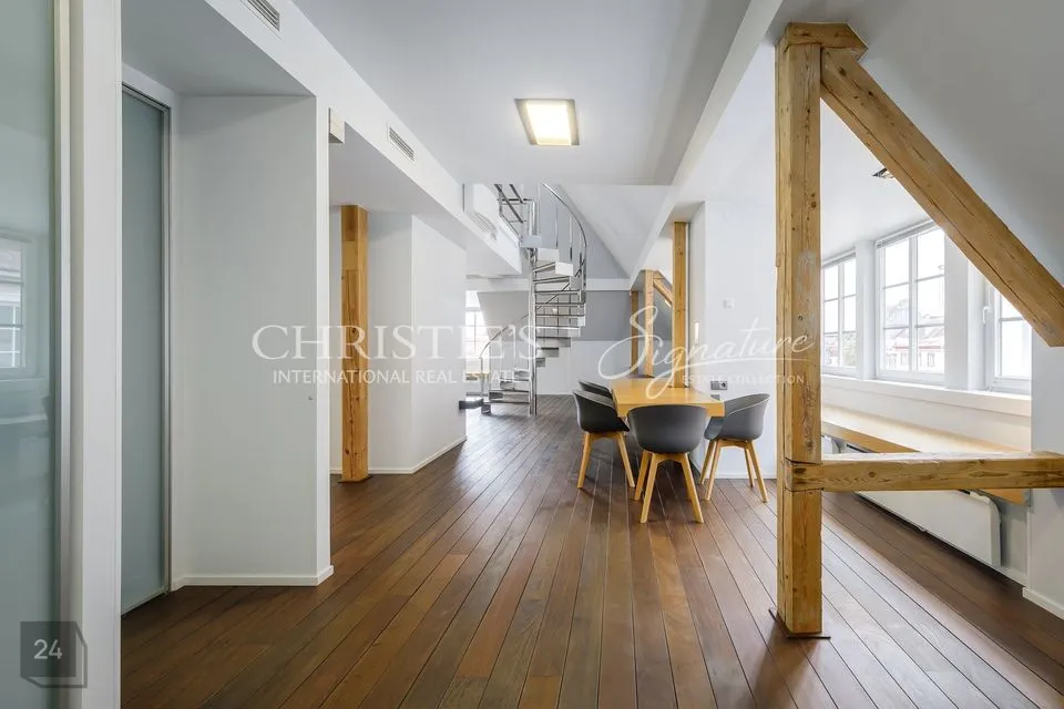 Köök on varustatud uusima tehnoloogiaga ja selles on Gaggenau seadmed. Kaunis elutuba pakub palju avatud ruumi ja puuküttega kamin lisab erilise hubasuse. Spiraalne trepp viib teid teise korruse trepihalli , kust avaneb vapustav vaade üle Raekoja platsi. Sellel korrusel paiknevad 2 magamistuba ja wc/duśśiruum. Peamagamistuba on ühendatud vannitoasviidiga ning sellel on ainulaadne klaaslagi ja pääs katuseterrassile. Need kaunid kirikutornid ja vanalinnale omased punased katused ei jäta küll kedagi ükskõikseks.