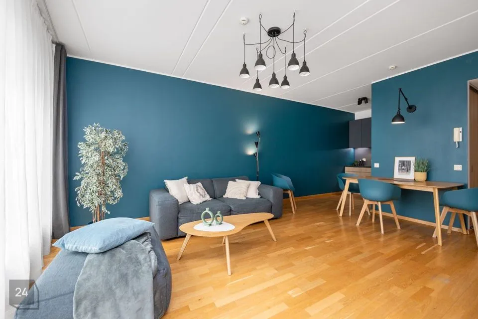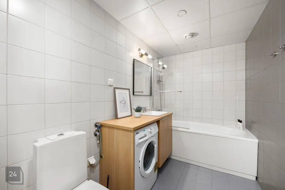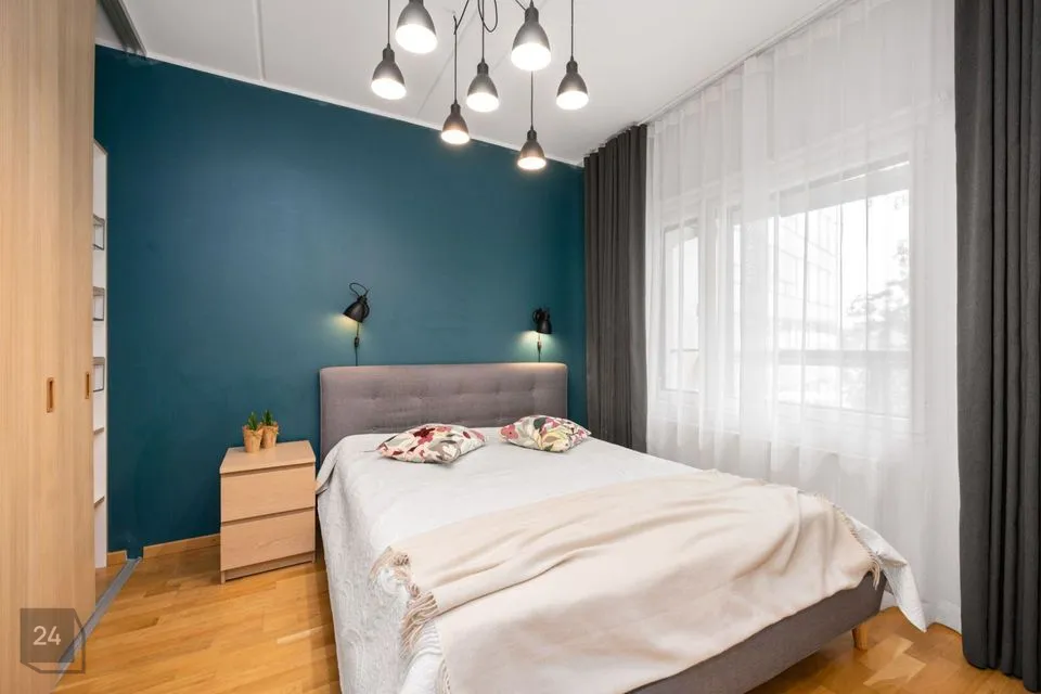 Põrandal parkett, seinad värvitud, vannituba plaaditud (el.regul.põrandaküte).