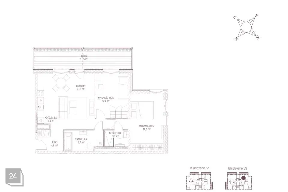 NB! Pildid on tehtud analoogse planeeringuga näidiskorterist, korterihind ei sisalda mööblit sh köögimööblit!