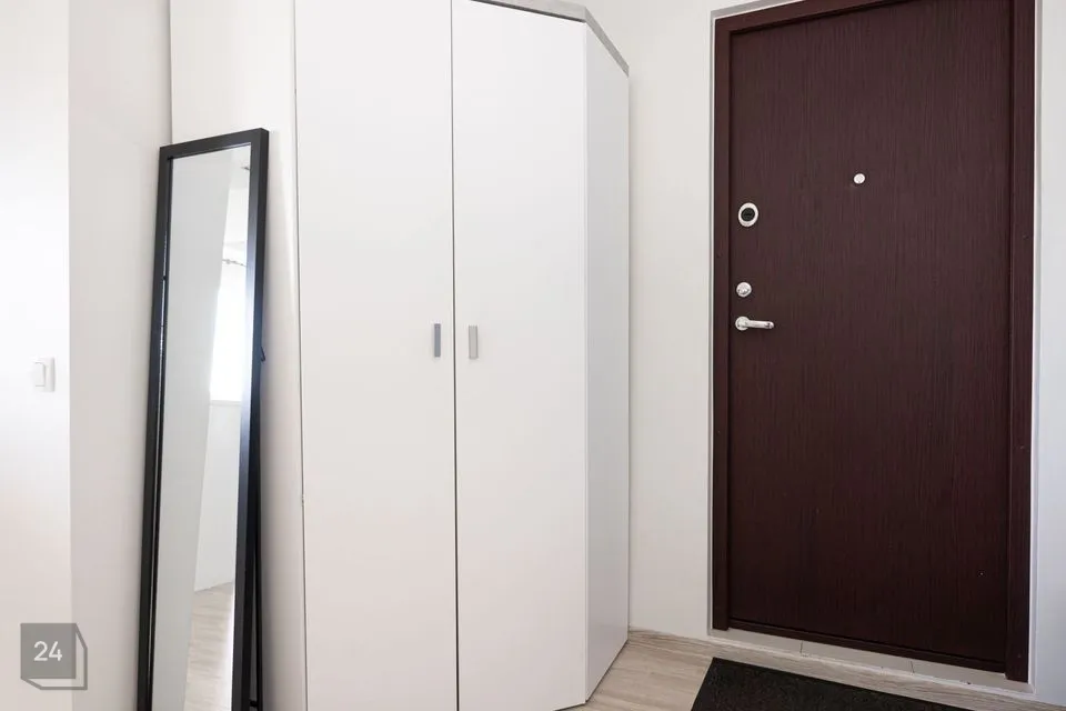 Planeering: esik, eraldi magamistuba, köök ja elutuba (avatud lahendus), klaasitud rõdu vaatega maja ette parkimisplatsile, suur vannituba koos WC-ga.