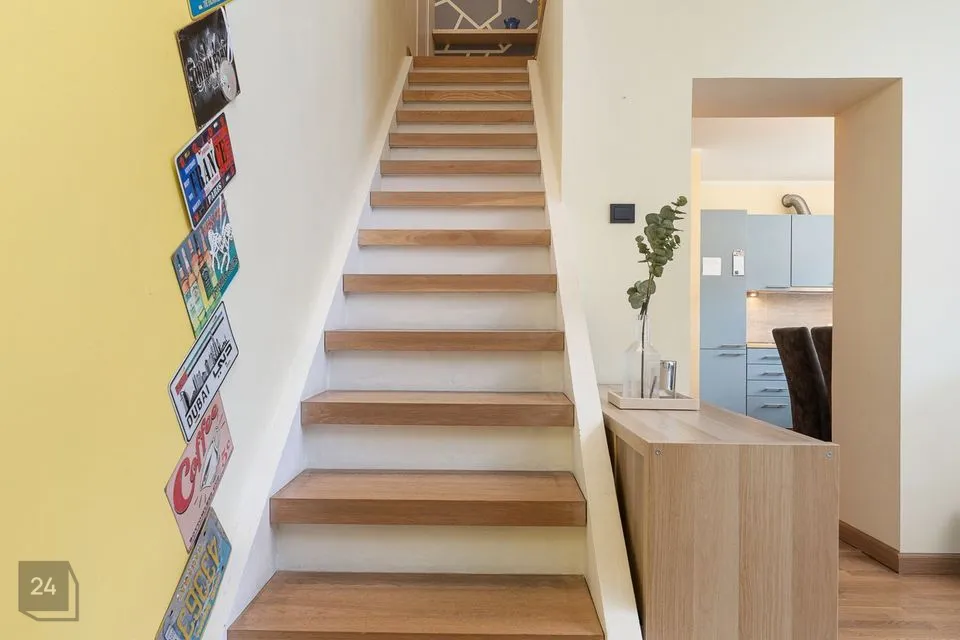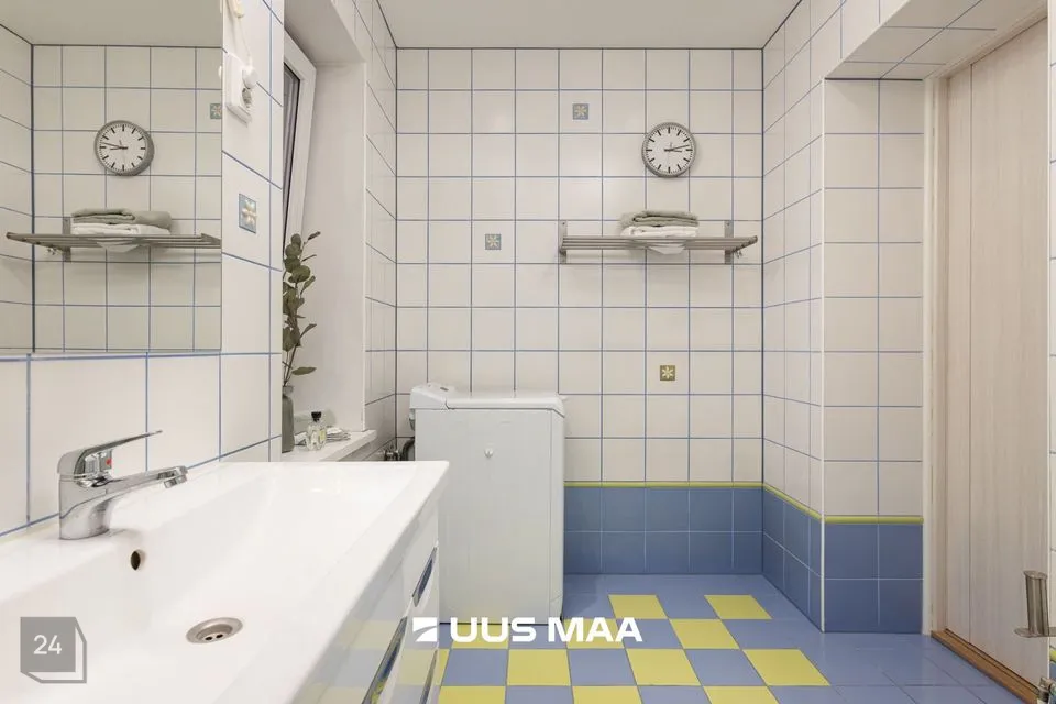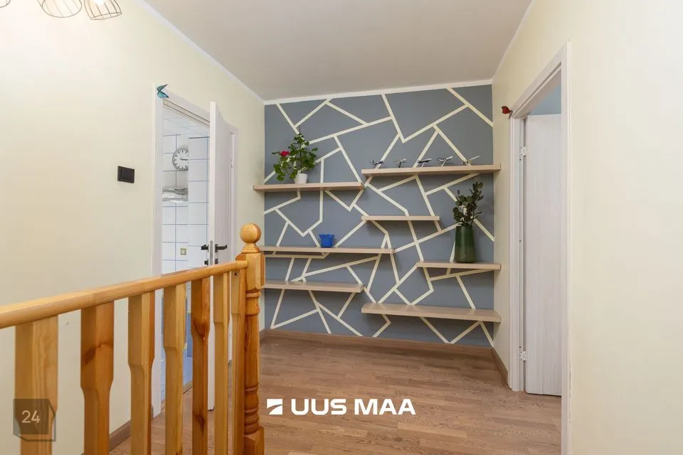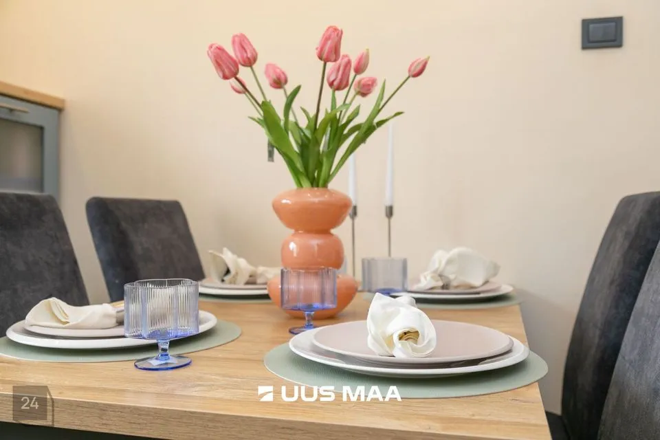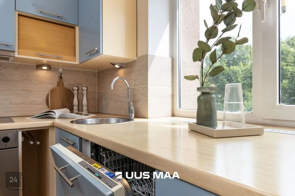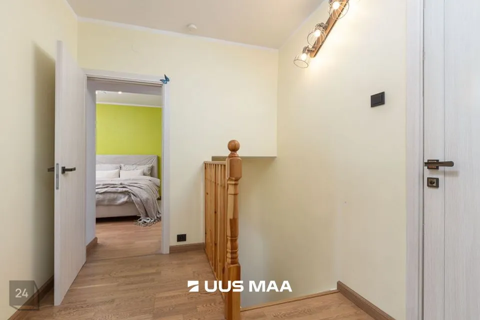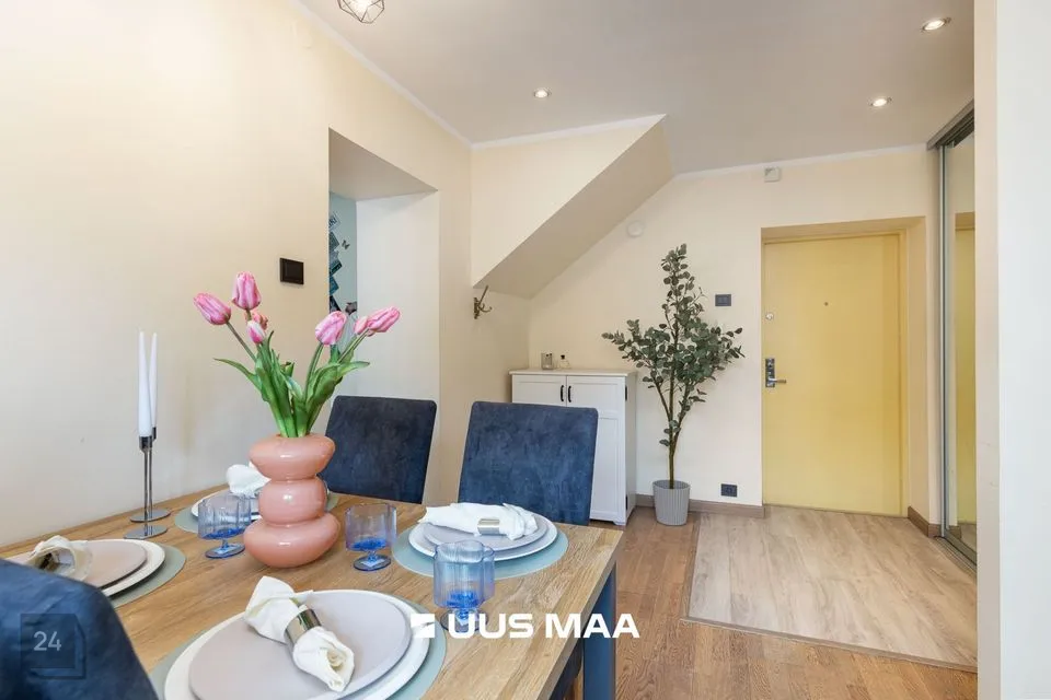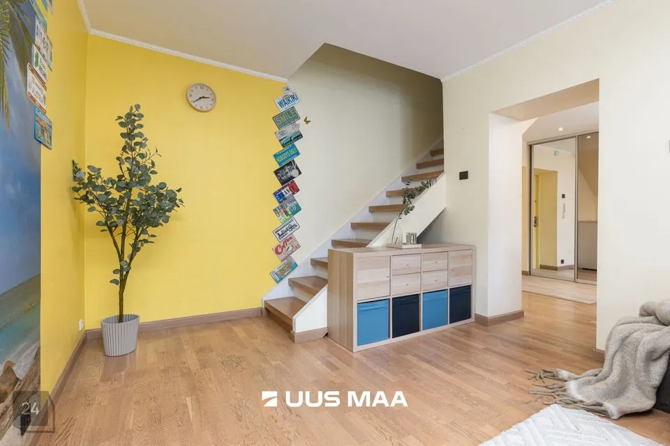 Korterisse sisenemisel on avar esik koos praktilise suure garderoobikapiga. Otse ees on poolavatud köök kõige söögitegemiseks vajalikuga ning paremale jääb hubane elutuba aja veetmiseks. Elutoast viib trepp teisele korrusele, kus vasakul asub aknaga vannituba (dušinurk ja põrandaküte), paremal väike lastetuba või kodukontor ning edasi avar rõduga magamistuba. Magamistoas asub aknaga walk-in garderoob. Tubades on kvaliteetne parkettpõrand.