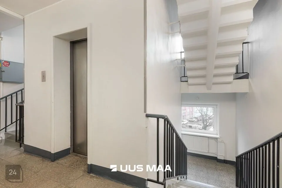 See 3-toaline korter paikneb läbi kahe korruse maja viiendal korrusel ning vaade avaneb Raua tänavale.