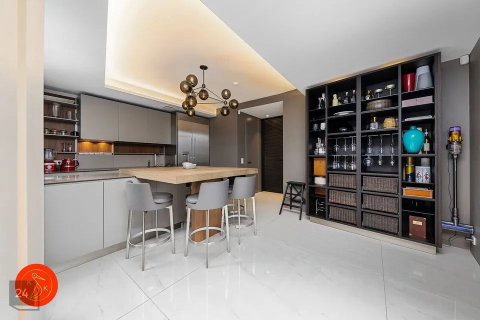Funktsionaalsesse Poliform Varenna köögimööblisse on integreeritud kvaliteetne köögitehnika: nõudepesumasin, induktsioonpliit, praeahi, Gaggenau külmkapp koos jäämasinaga ja Liebherr veinikülmik. Lisaks Flexform köögipukid.