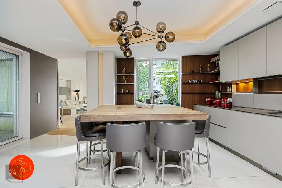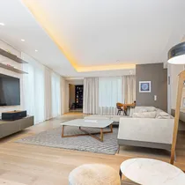 Luksuslikud modernsed lahendused kohtuvad interjööris ajatu disainiga. Läbimõeldud pisidetailid elavdavad avaraid ruume, millele lisanduvad neutraalsed toonid ja luksuslikud materjalid. Lõpptulemus on stiilipuhas ja hubane.