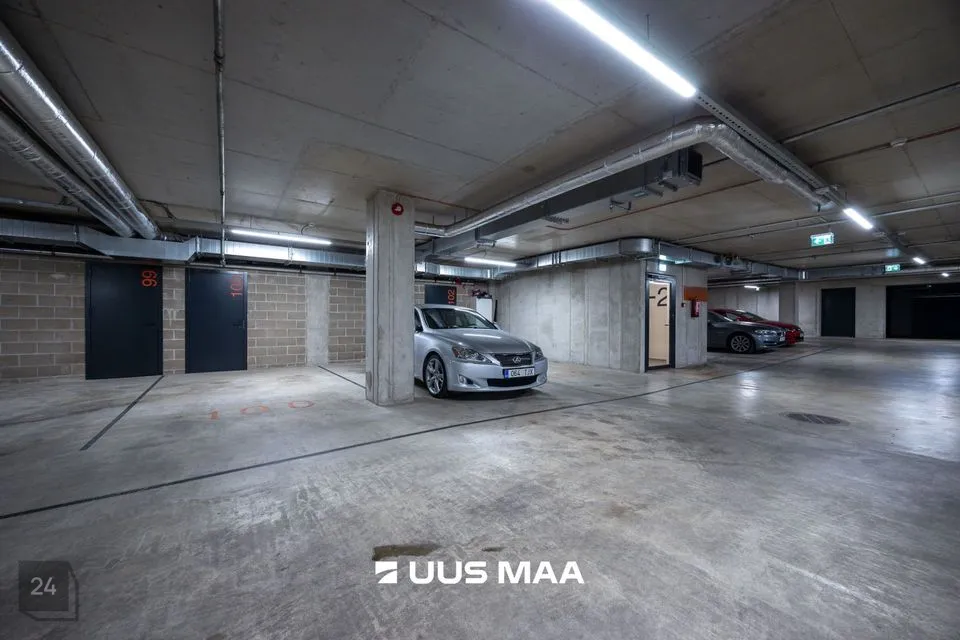 Korter müüakse koos soojas maa-aluses parklas asuva parkimiskohaga (16 000€) ja mahuka panipaigaga (5000€). Panipaik asub mugavalt kohe parkimiskoha juures.