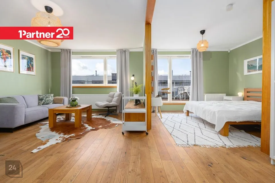 Müügile on tulnud avar ja maitsekalt renoveeritud 2-toaline katusekorter südalinnas vaiksel Kaupmehe tänaval.