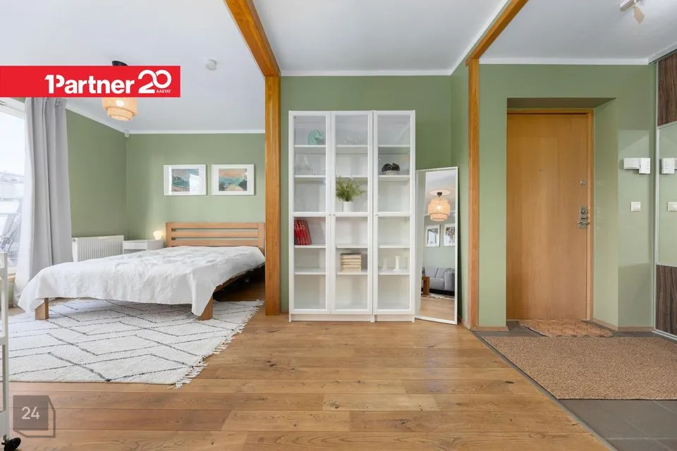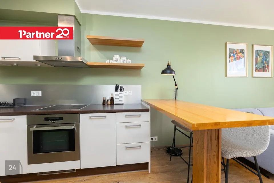 Kõik mööbel ja sisustus jääb uuele omanikule. Registri järgi on see 1-toaline (stuudiokorter) ja magamistoa osa on juurde ehitatud (sh garderoob).