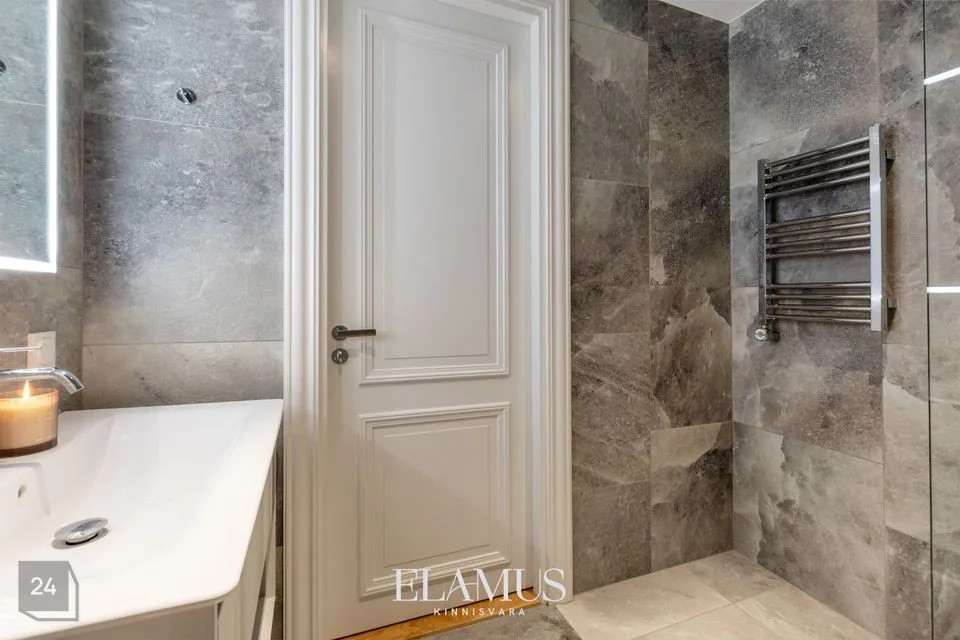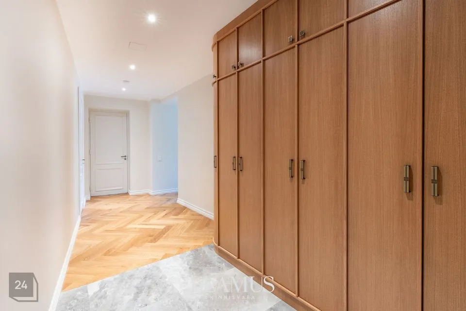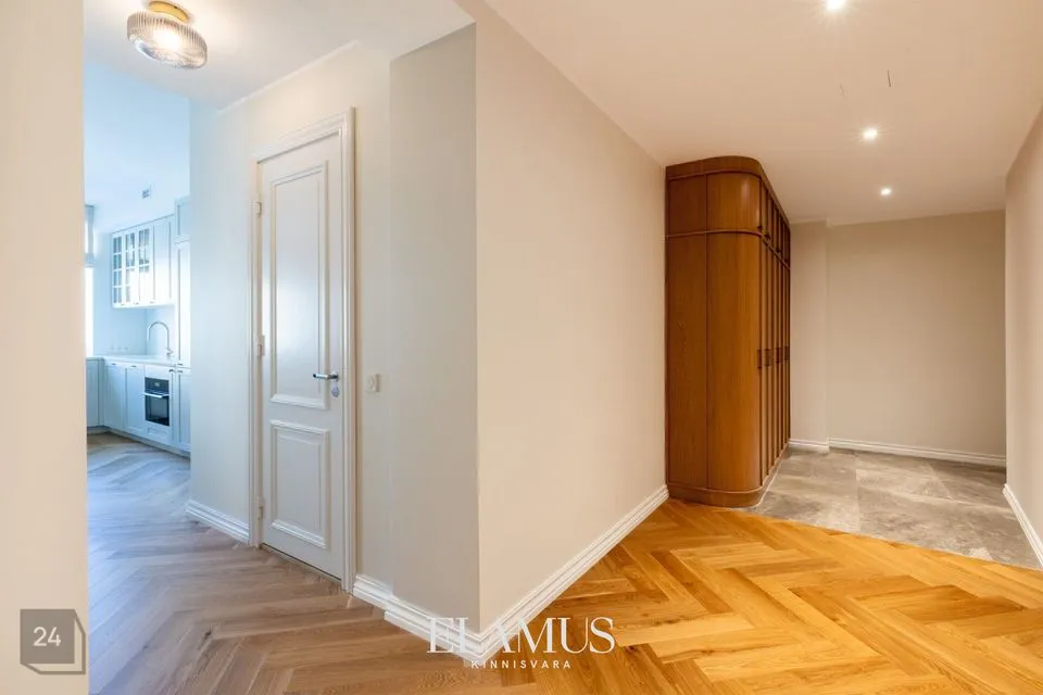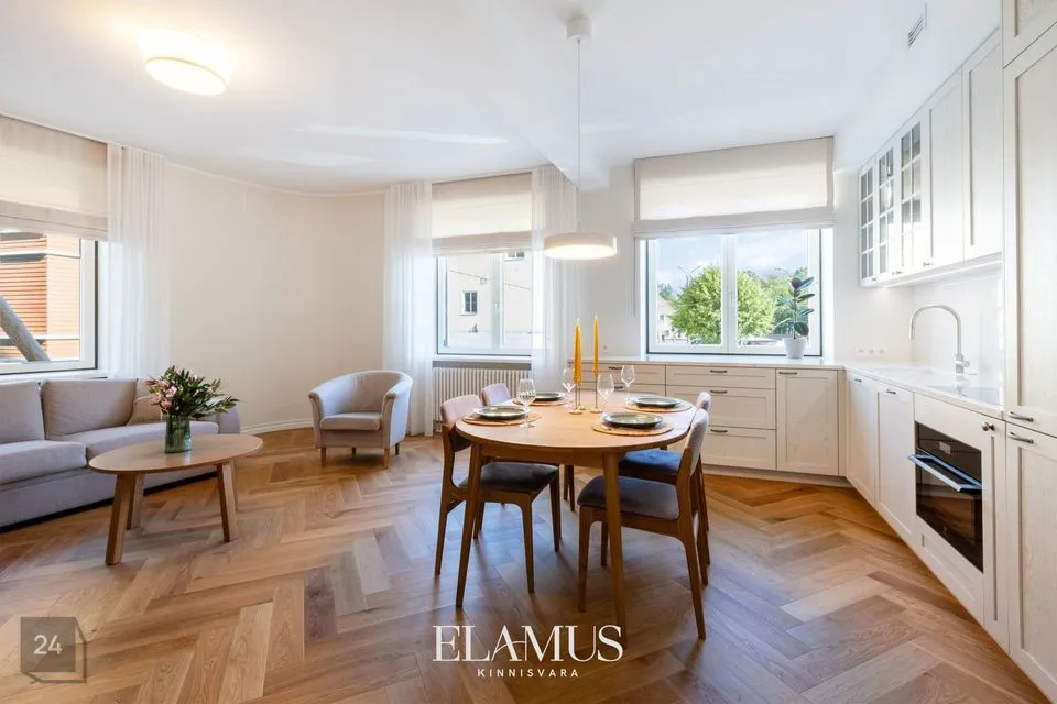 Siseviimistluses on kasutatud kvaliteetseid materjale- põrandatel on kalasabamustriline parkett, mis toob ruumidesse elegantsi ja hubasust. Kööki on sisseehitatud eritellimusel valmistatud mööbel koos integreeritud tehnikaga, sh külmik, elektripliit, ahi ja nõudepesumasin.