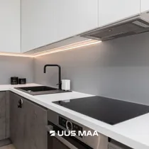 Köök: kvaliteetne köögimööbel ja tehnika (väärtus 5700 €), automaatne valgustus kraanikausi kohal, vaated sisehoovi poole.