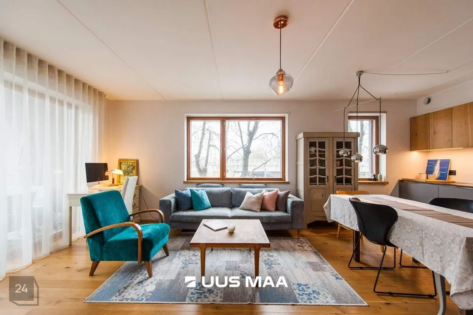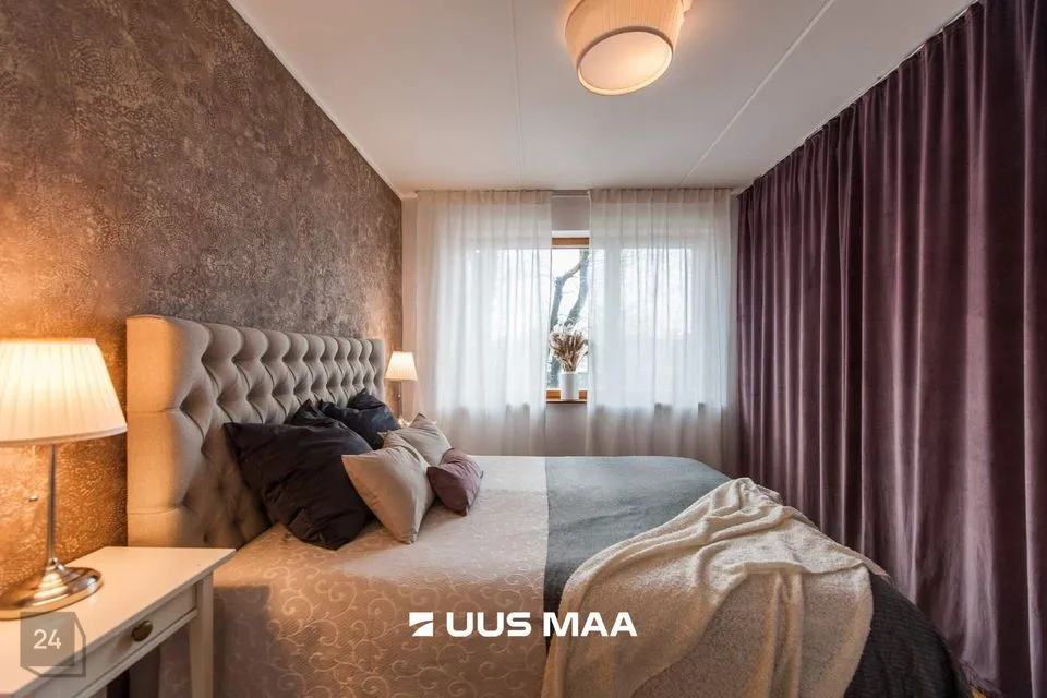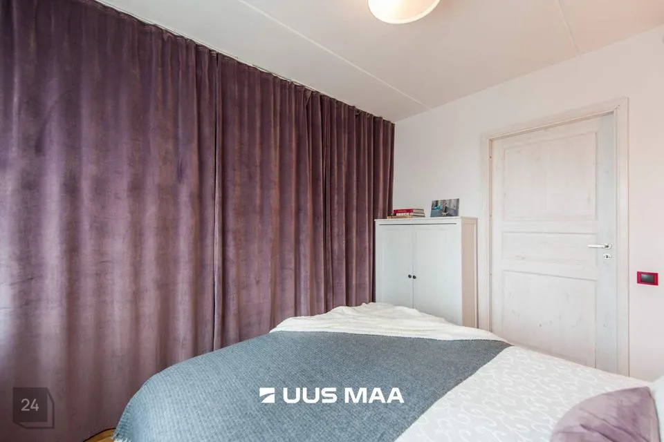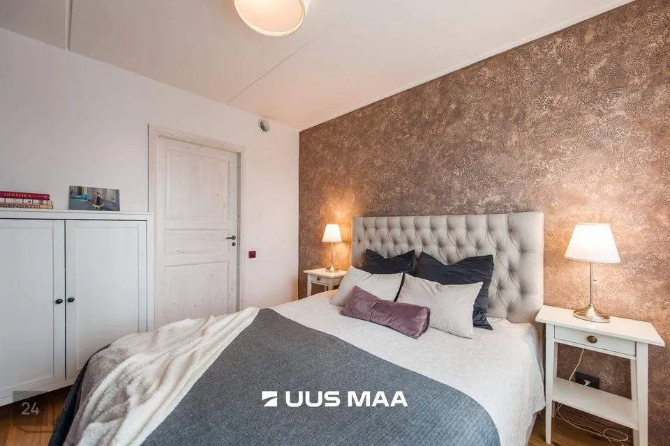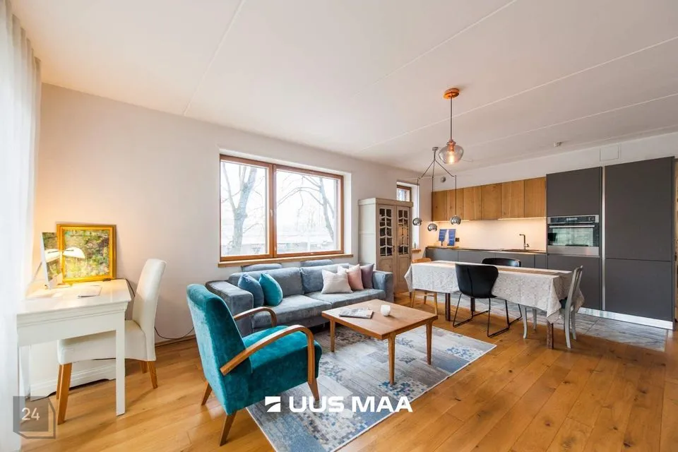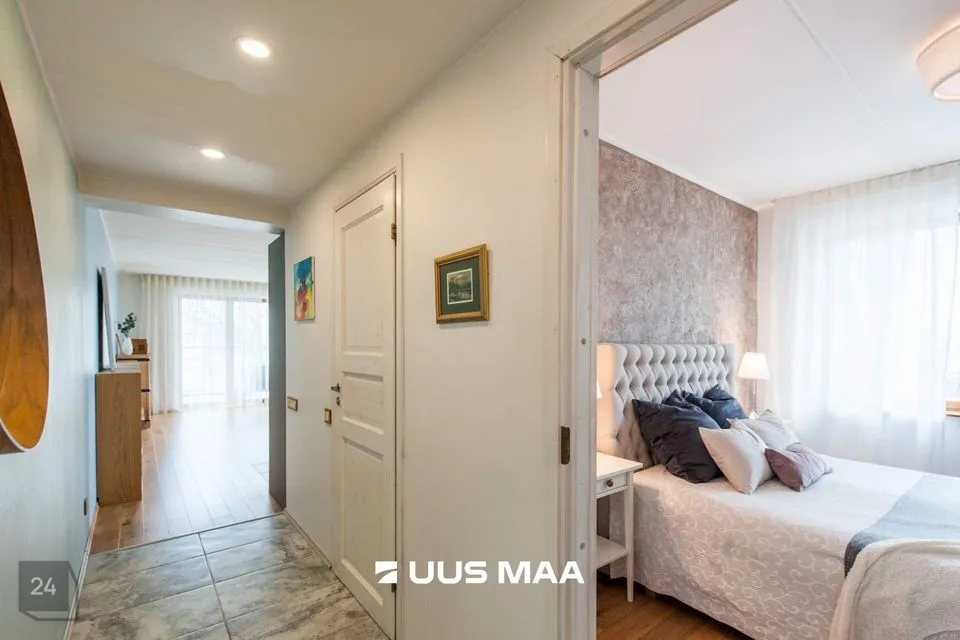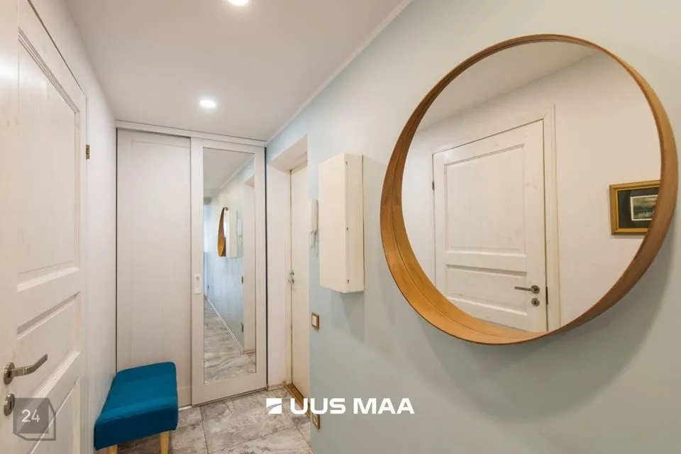 Tegemist on väga mugava ning praktilise planeeringuga. Maitsekalt siseviimistletud korter on väga heas seisukorras. Köök on varustatud kvaliteetse mööbli ning mugava integreeritud tehnikaga (keraamiline pliidiplaat, ahi, külmkapp, nõudepesumasin, õhupuhasti). Vannituba on hästi planeeritud paigutusega, mahutades nii vanni, kui ka pesumasinat. Tubade põrandatel on kvaliteetne tamme laudparkett. Köögi, vannitoa ja esiku põrandad on plaaditud. Siseviimistlus on heledates toonides, mis võimendavad avarust ja valgusküllasust. Paigaldatud Soome tüüpi aknad on varustatud kolmekordse puitalumiiniumklaaspaketiga parema müraisolatsiooni tagamiseks.