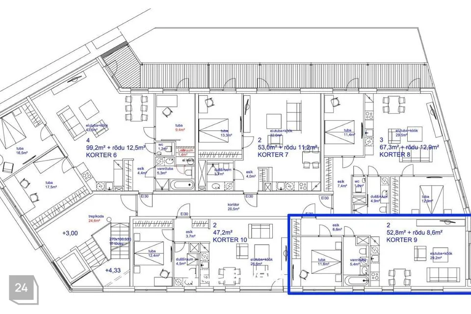 Korter on 52,8 ruutmeetrise üldpinnaga ning asub viiekordse maja kõrgel teisel korrusel. Korteri üldpinda kuuluvad: avatud planeeringuga köök-elutuba (29,2 m²), garderoobiga magamistuba (11,6 m²), vannituba/WC (5,4 m²) ja esik (6,6 m²). Elutoast on pääs mõnusale, 8,6 ruutmeetrisele rõdule. Ruumid on valgusrikad tänu suurtele akendele, mis avanevad pealelõunasele ja õhtupäiksele. Korterile kuulub ka panipaik hoone 0-korrusel. Eraldi privaatset parkimiskohta korteri juurde ei kuulu. Parkimisvõimalus kõrvaltänavatel.