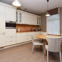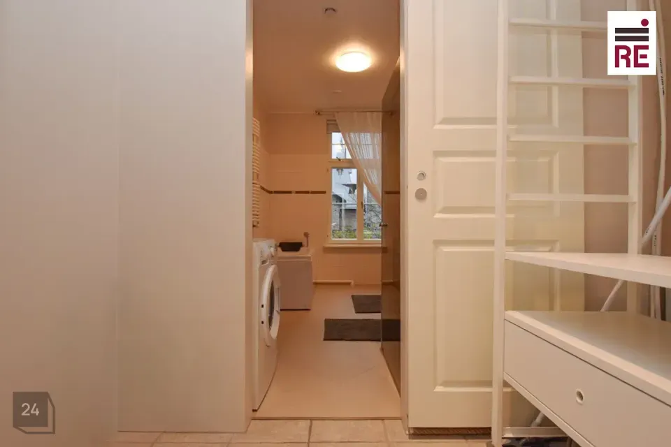 Avar esik juhatab meid edasi vasakut kätt jäävasse poolavatud köök-elutuppa ja paremat kätt jääb tagahoovi poolne toakene, mis sobib hästi lastetoaks või kodukontori ruumiks. Väiksemat magamistuba eraldab suurest, samuti tagahoovi avanevate akendega magamistoast avar aknaga vannituba, mis on mugavalt magamistoaga omavahel ühendatud.