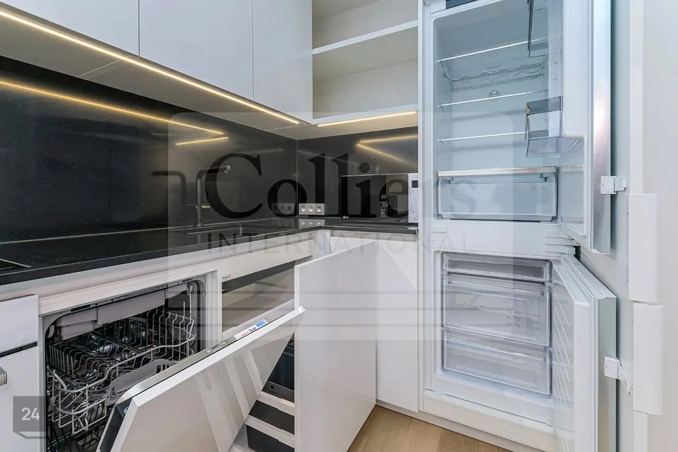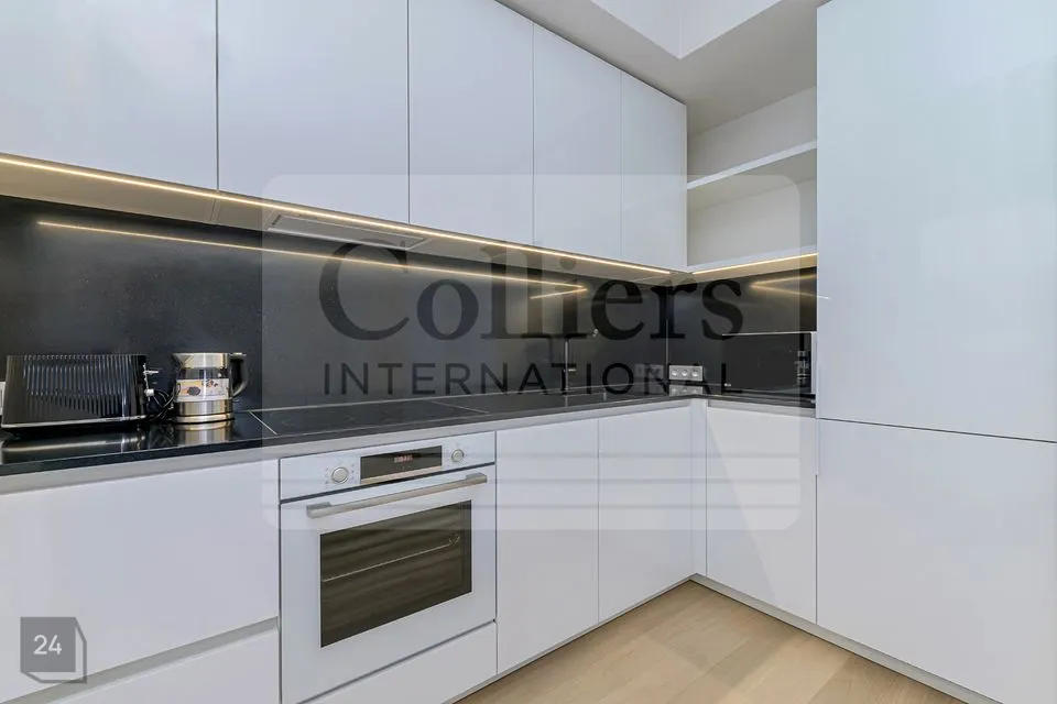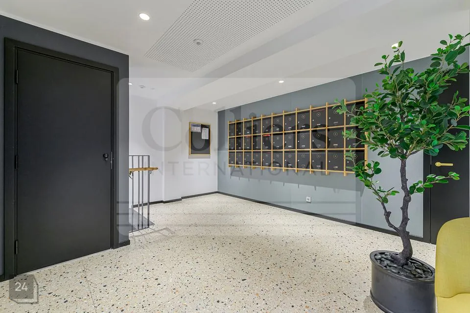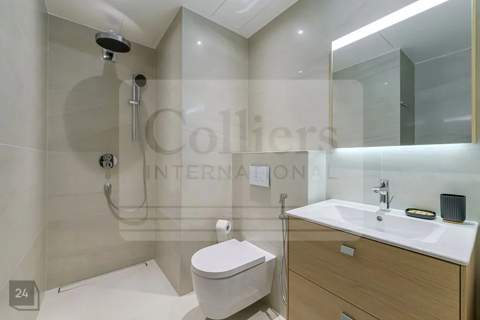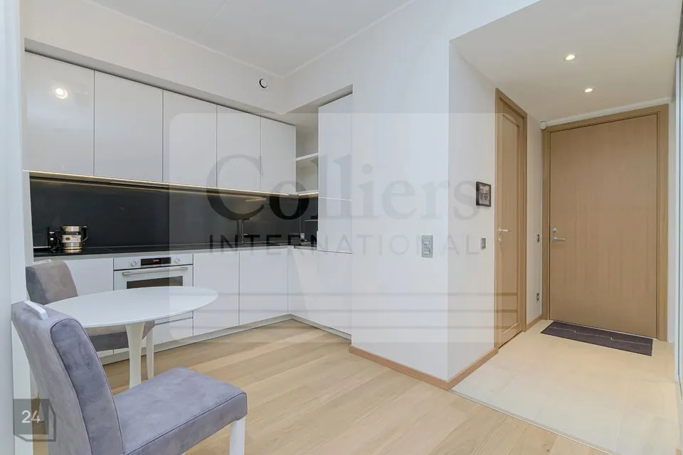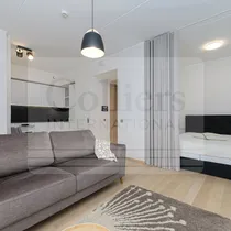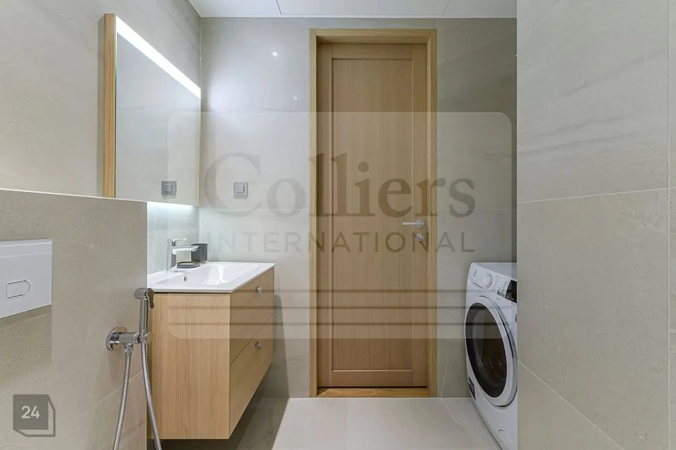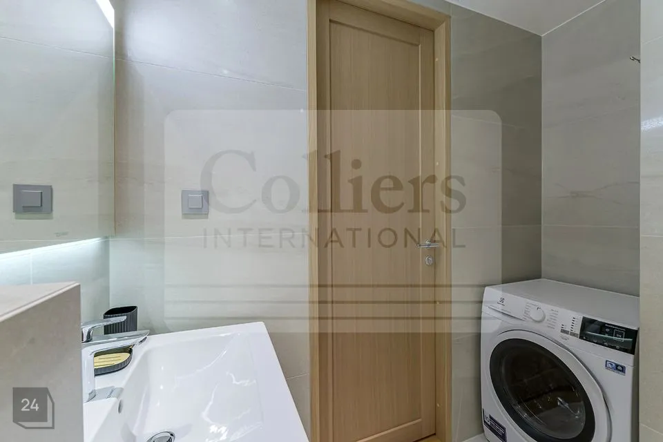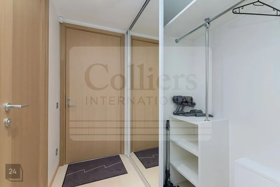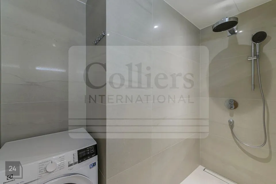 A smart home solution has been installed in the apartment, which allows the resident to regulate the apartment's indoor climate, monitor the video intercom, apartment technical systems, water and electricity consumption, and do this from an iPad installed in the apartment or via internet-based personal smart device.