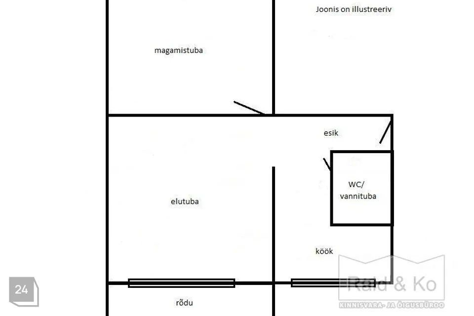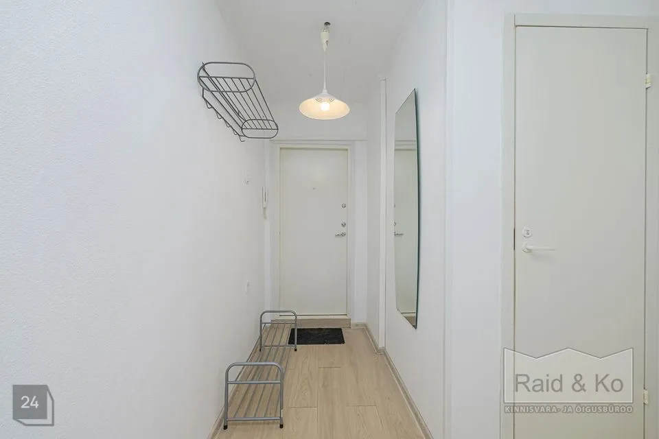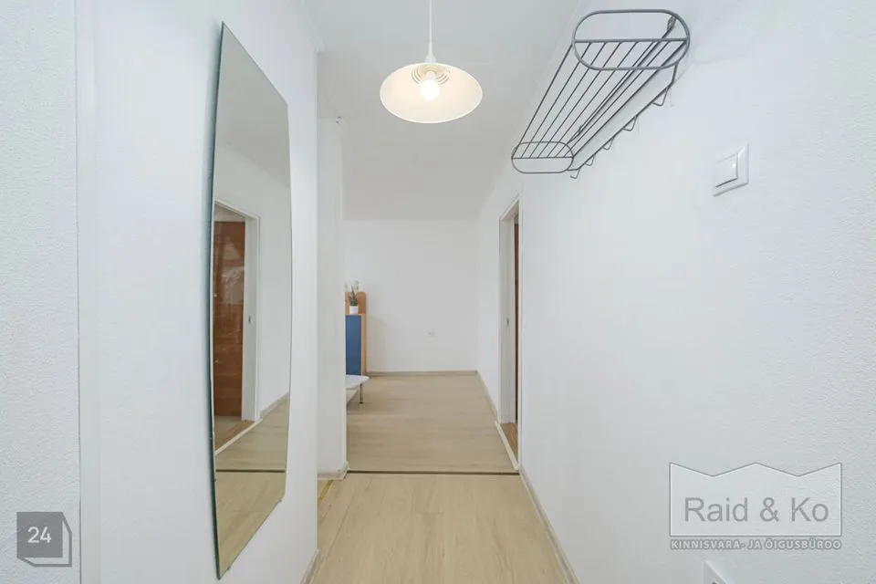 Korter koosneb kahest toast, eraldi köögist, wc/vannitoast, esikust ning rõdust. Korter on valge, soe. Korteri planeering on läbi maja, päikseline tuba on alati olemas. Magamistoa aken avaneb maja taha, rohelusse.