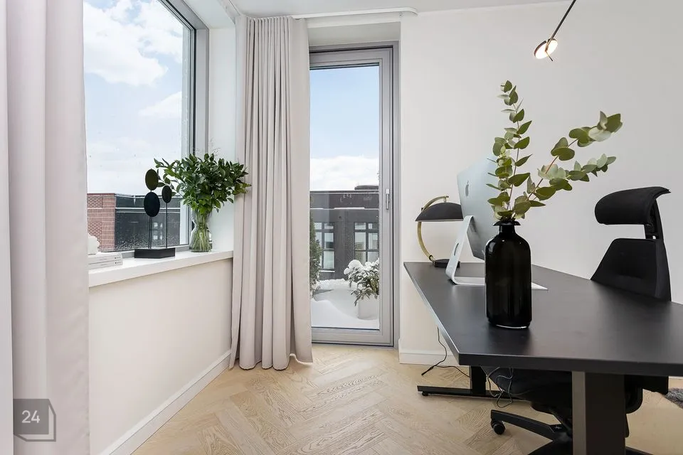 - viiendal korrusel asuvad: esik, avatud planeeringuga köök-elutuba, kaks eraldiasetsevat tuba ning tualett-duširuum. Elutoast ja kabinetist on pääsud rõdudele, kus saab nautida nii lõuna- kui õhtupäikest;