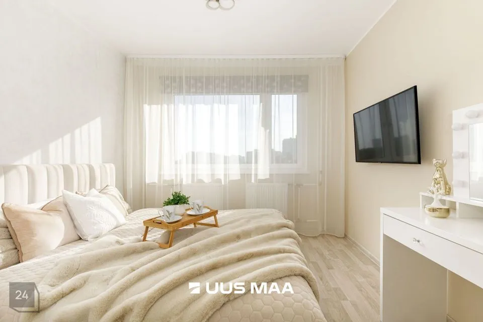 Müüki on tulnud kolmetoaline korter, mis asub viiekorruselise paneelmaja neljandal korrusel. Mõni aasta tagasi tehti korteris ümberplaneering kahetoalisest kolmetoaliseks – kõik dokumendid on korras, muudatused on kantud registrisse ja olemas on kinnitatud projekt. Kommunaalkulud on suvel ligikaudu 110 eurot ja talvel umbes 190 eurot kuus.